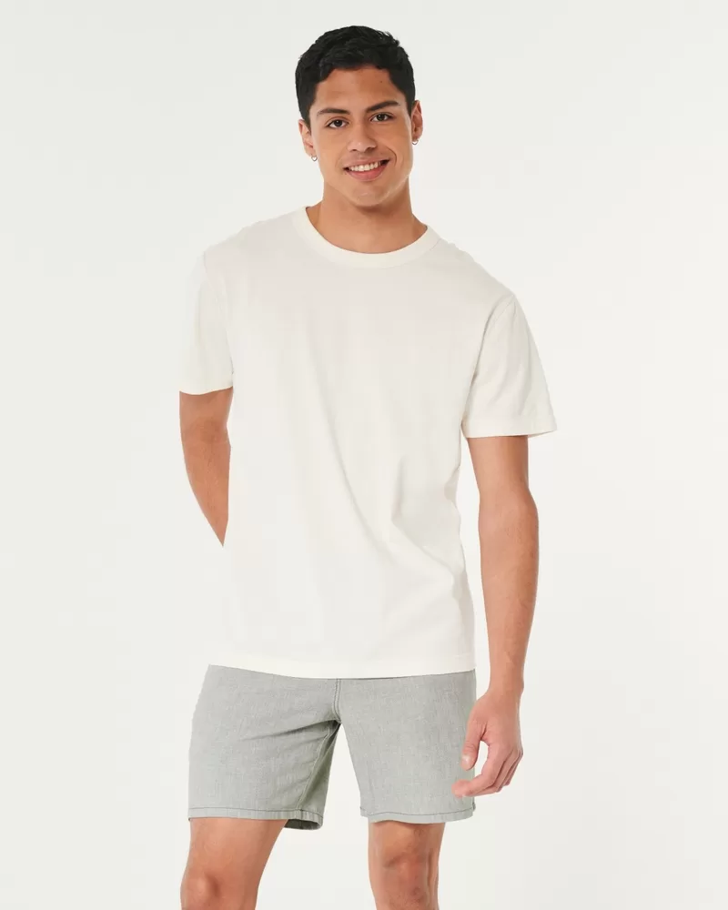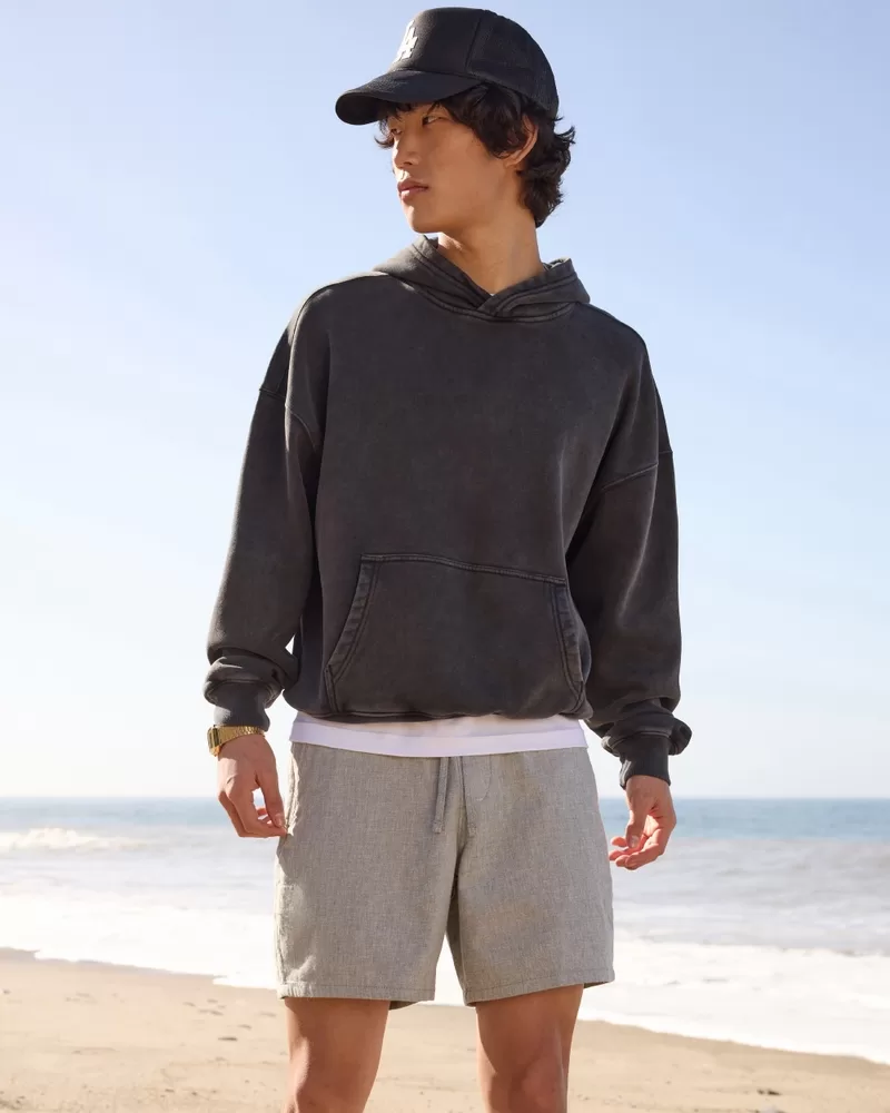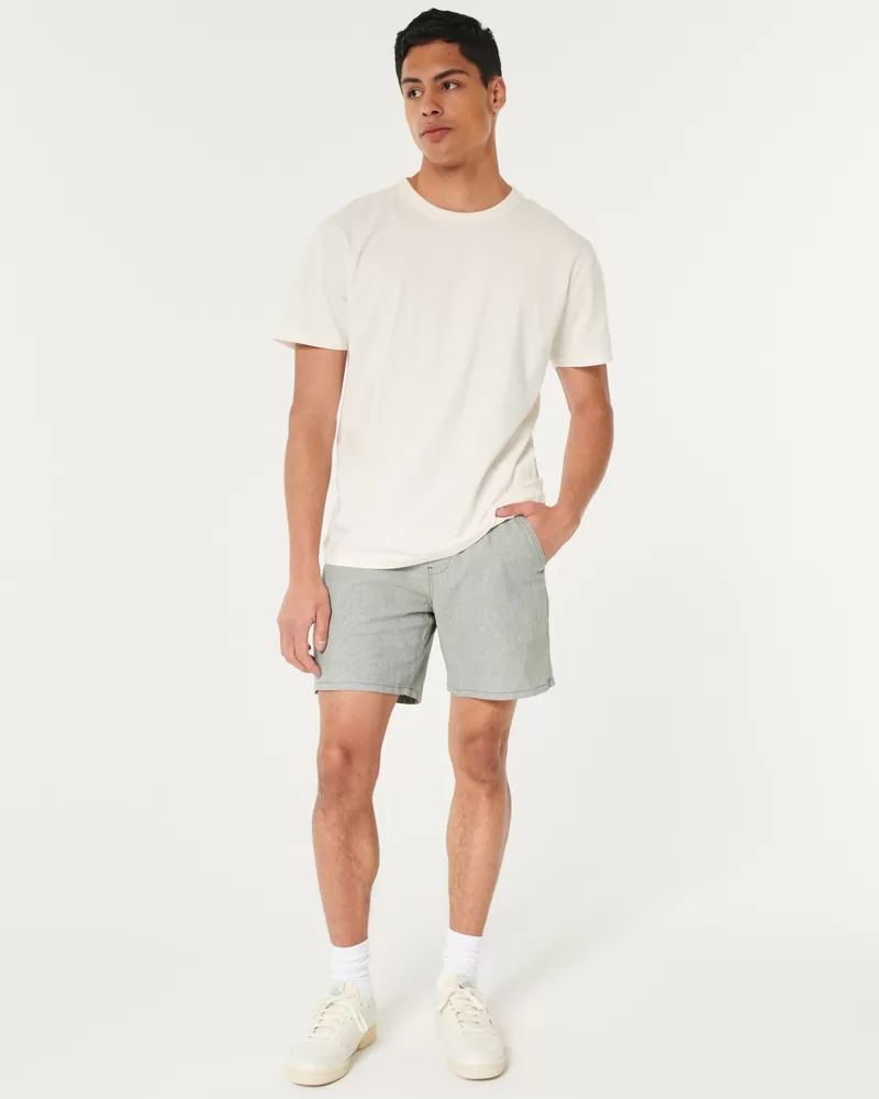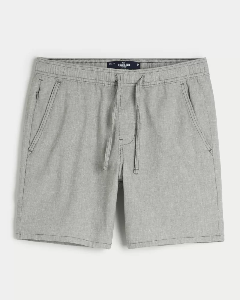 Ultra-comfortable pull-on shorts in a soft linen blend with Hollister Epic Flex stretch. Pockets, drawstring waist, right zipper pocket, 7″ inseam. Imported.