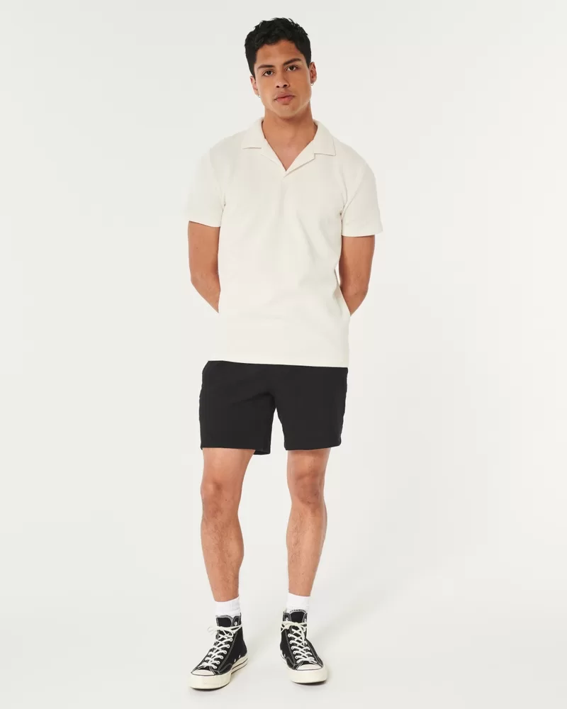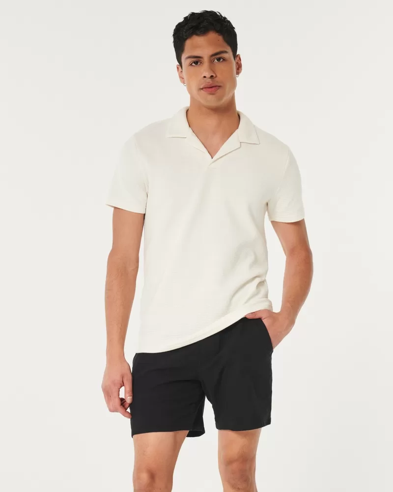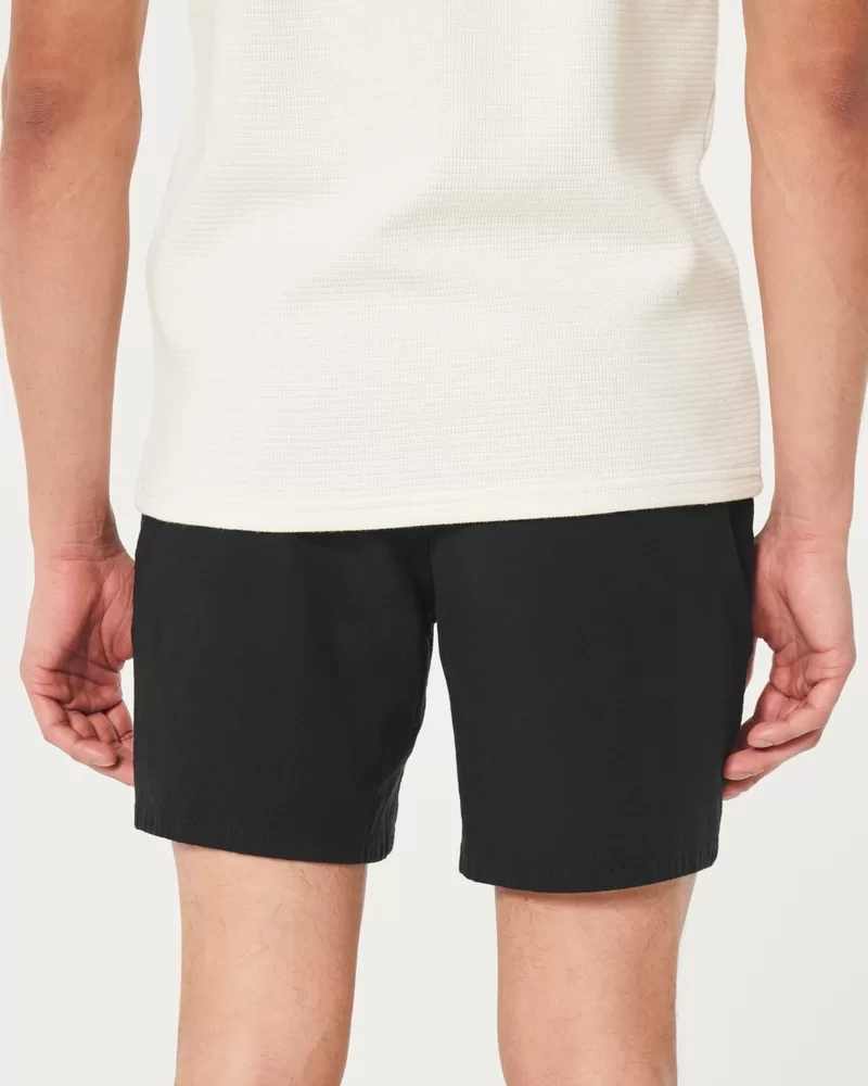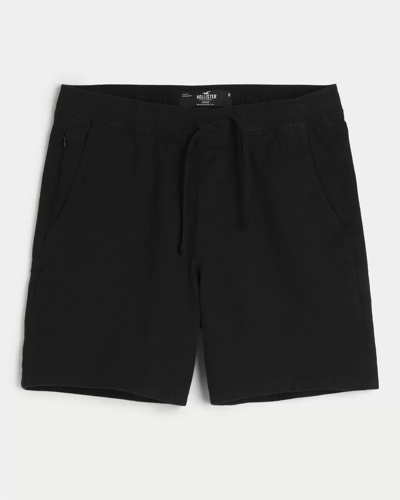 Ultra-comfortable pull-on shorts in a soft linen blend with Hollister Epic Flex stretch. Pockets, drawstring waist, right zipper pocket, 7″ inseam. Imported.