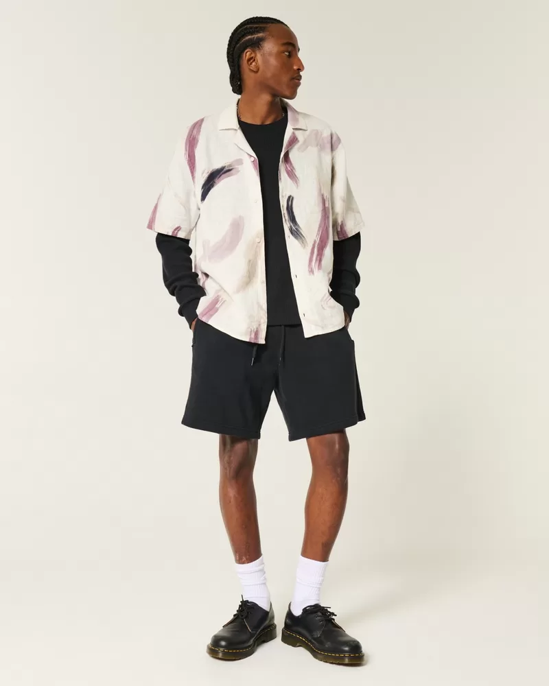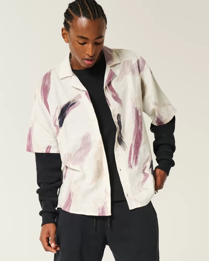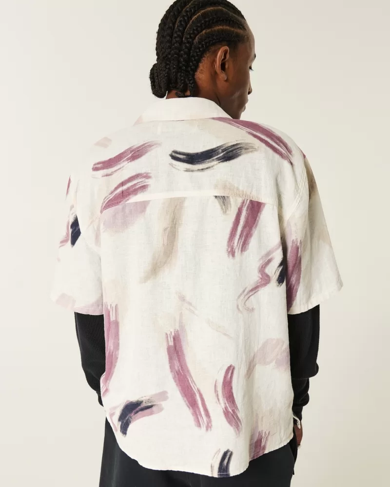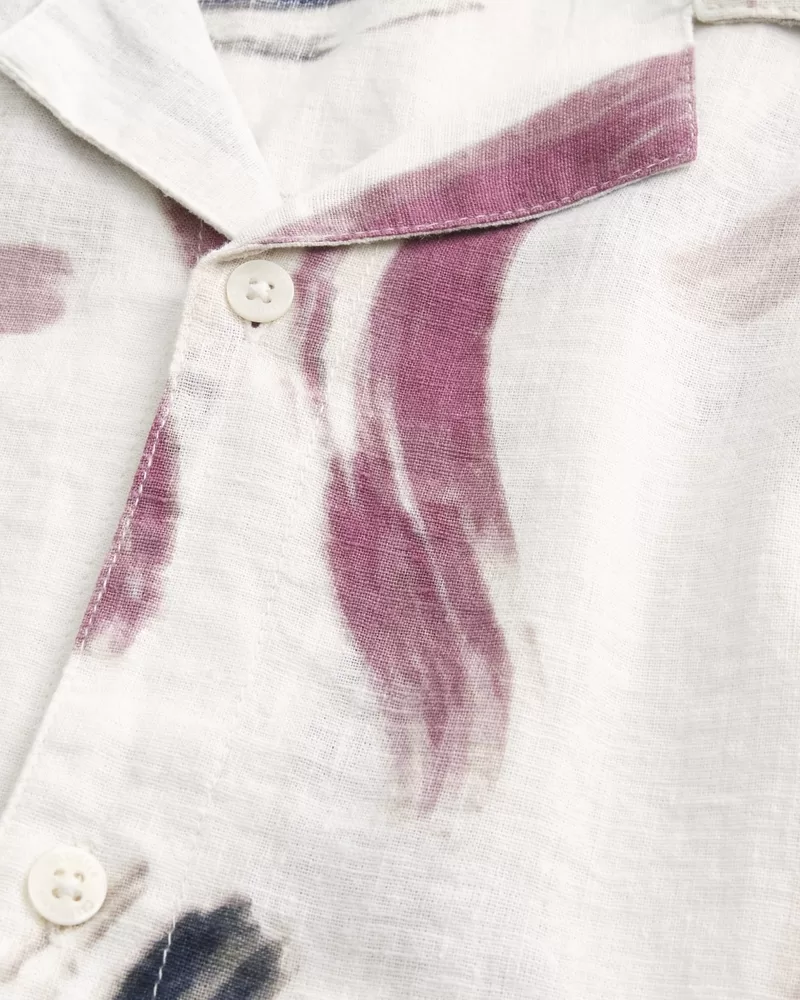A classic shirt in a soft linen blend, designed with a button closure. Short sleeves, all-over pattern, collar. Imported.