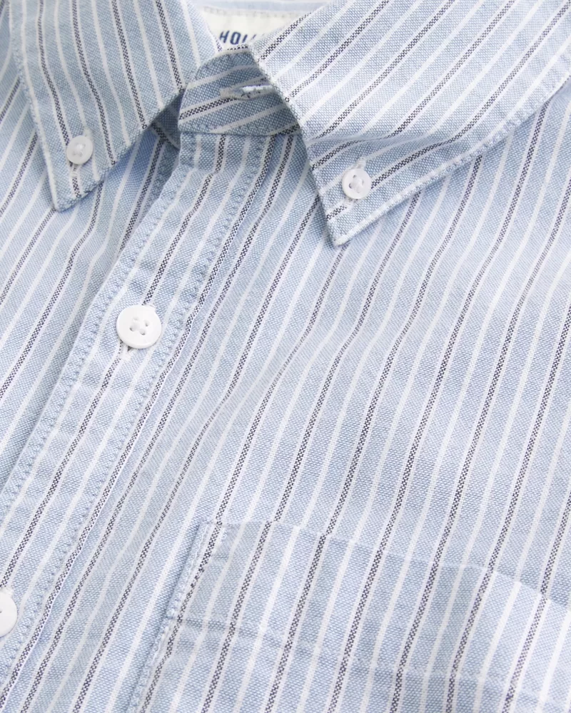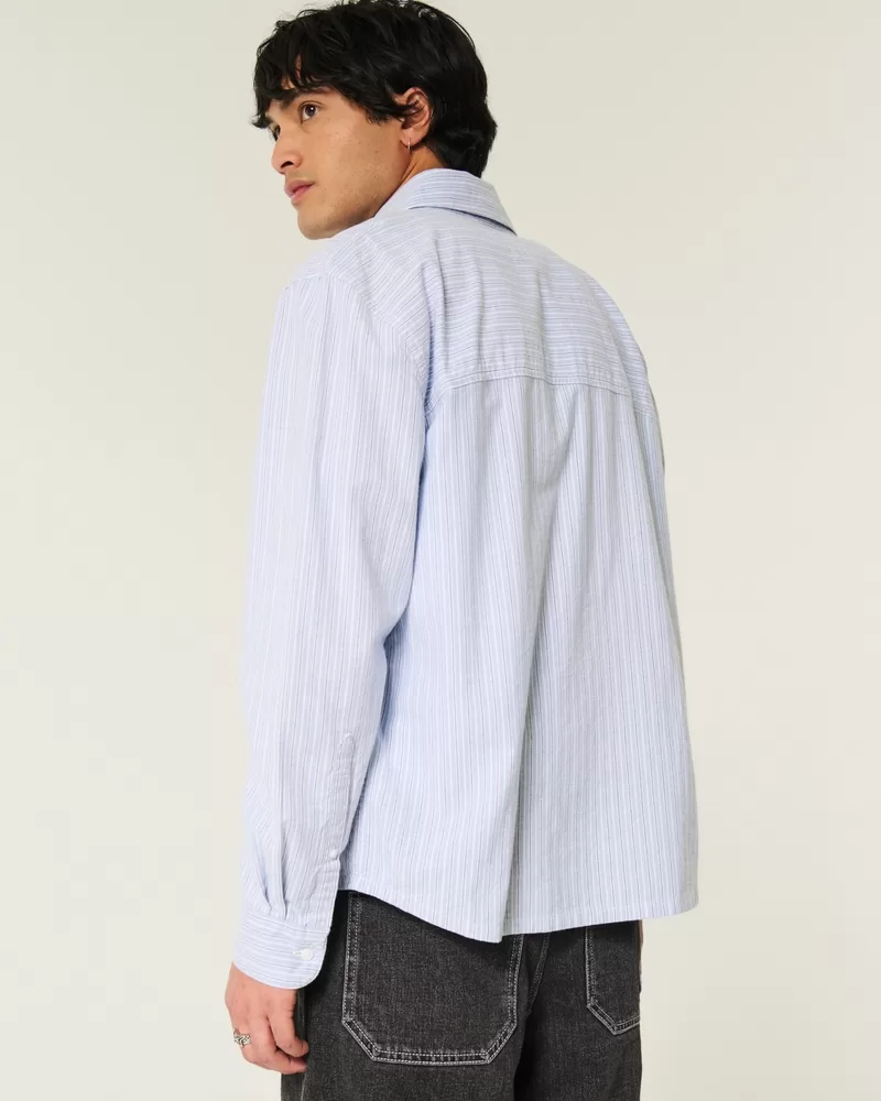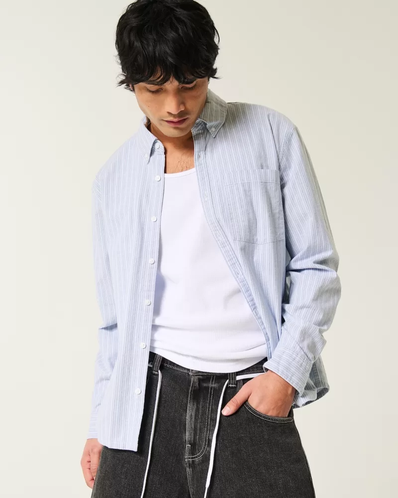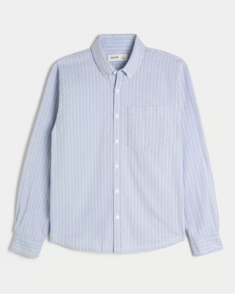 Made with soft Oxford fabric, this long-sleeve shirt has a full button closure, button-down collar and left chest pocket. Curved hem. Relaxed Fit.