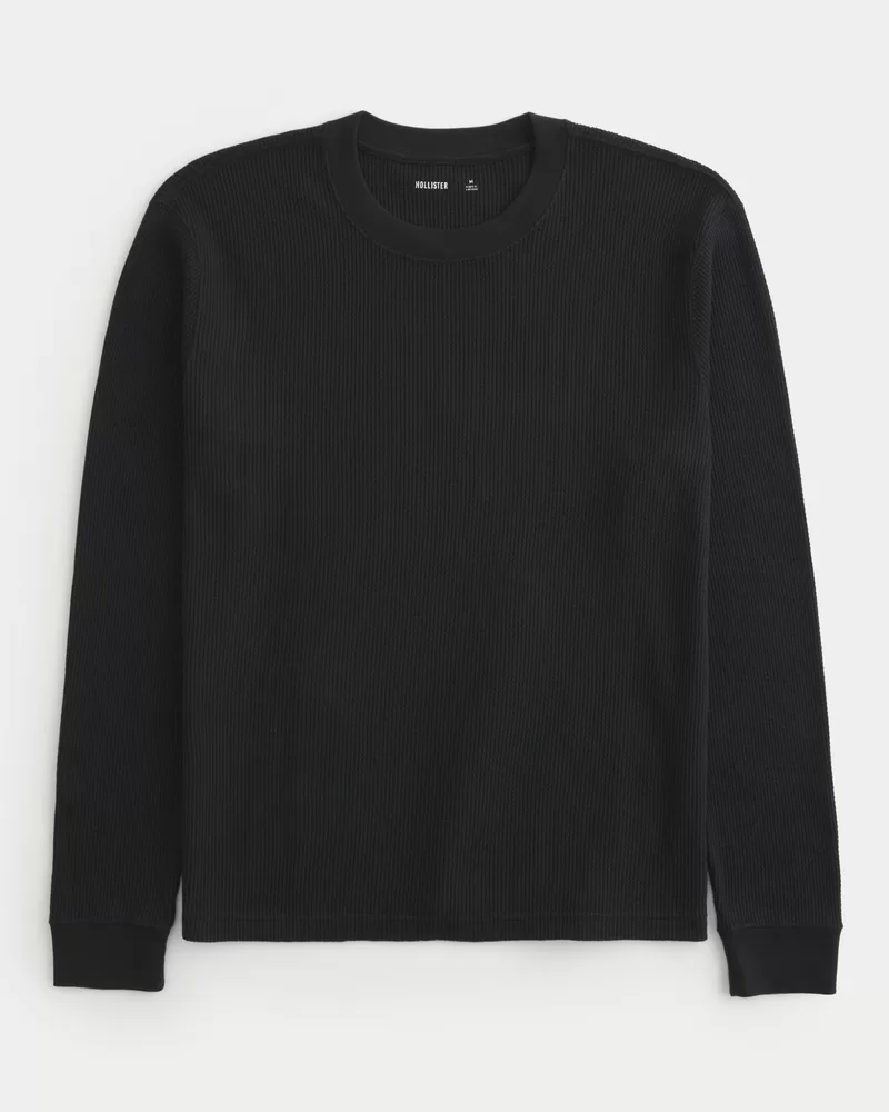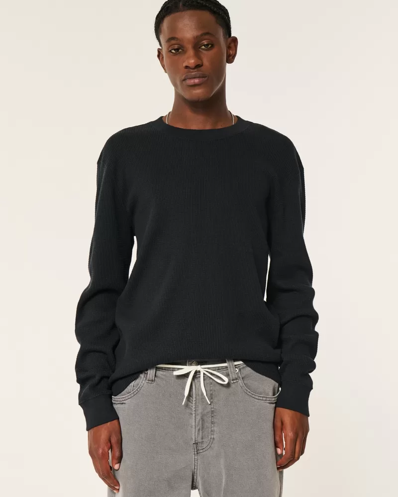 A classic long-sleeve t-shirt in super soft thermal waffle fabric. Crew neckline with button placket, long sleeves. Imported.