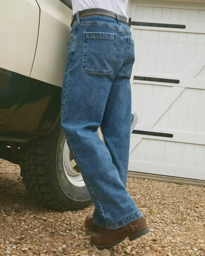 Ultra-comfortable jeans in Vintage Stretch denim, designed with a baggy leg. Medium wash.
