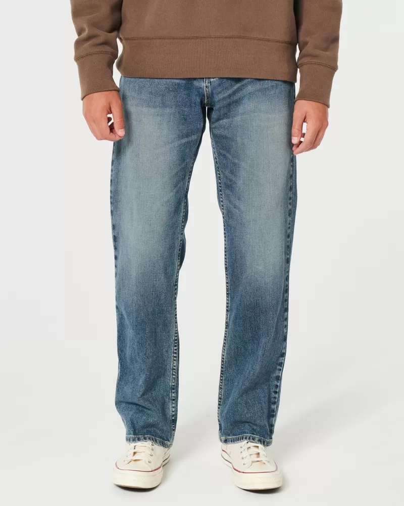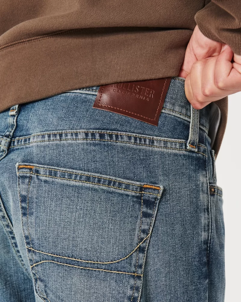 Designed with a slim fit through the hip and thigh with a 15.5” leg opening, these medium wash jeans feature Hollister Epic Flex denim. Fading and whiskering. Imported.