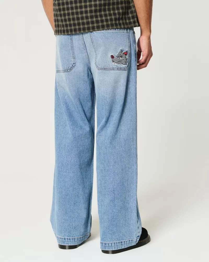 Medium Wash Wolf Graphic Super Baggy Jeans