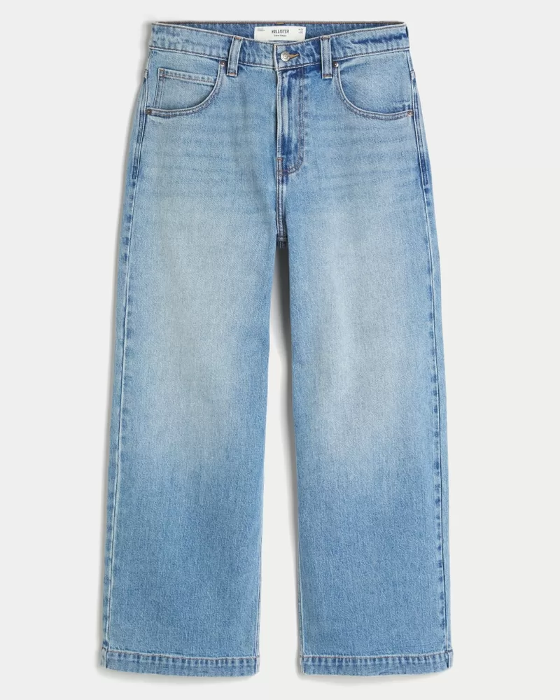 Ultra-comfortable denim jeans in a medium wash, designed with a super baggy leg. Wolf graphic embroidery at back pocket, stretch for comfort. Imported.