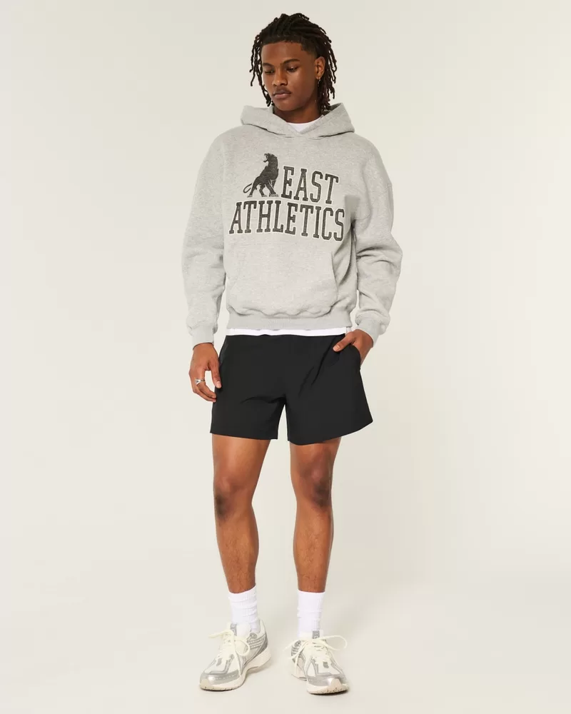 A sporty fabric makes these the most versatile shorts in your lineup for outdoor hangs, gaming and everything in between. Banded waist, right zipper pocket. Hits mid-thigh. Imported.