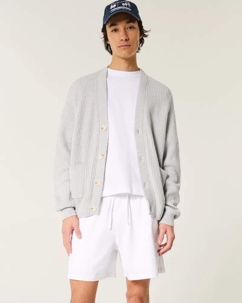 Mid-Thigh Linen-Blend Pull-On Shorts