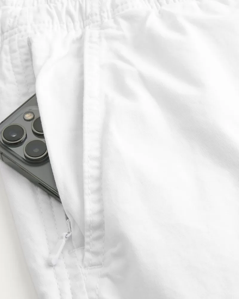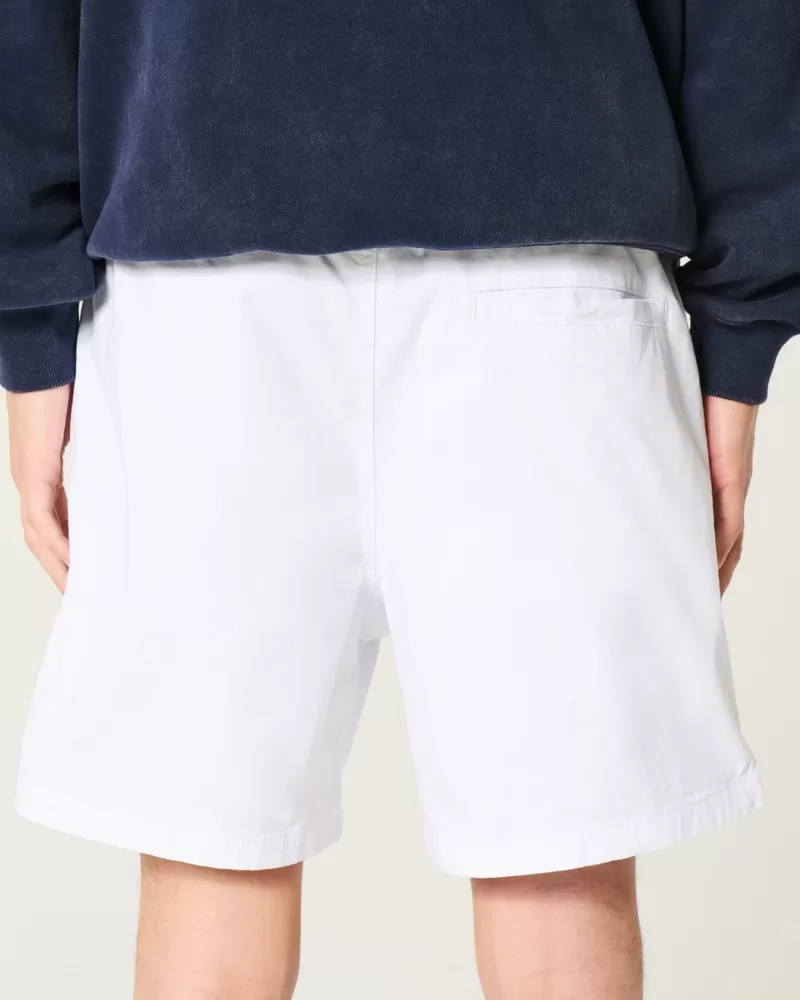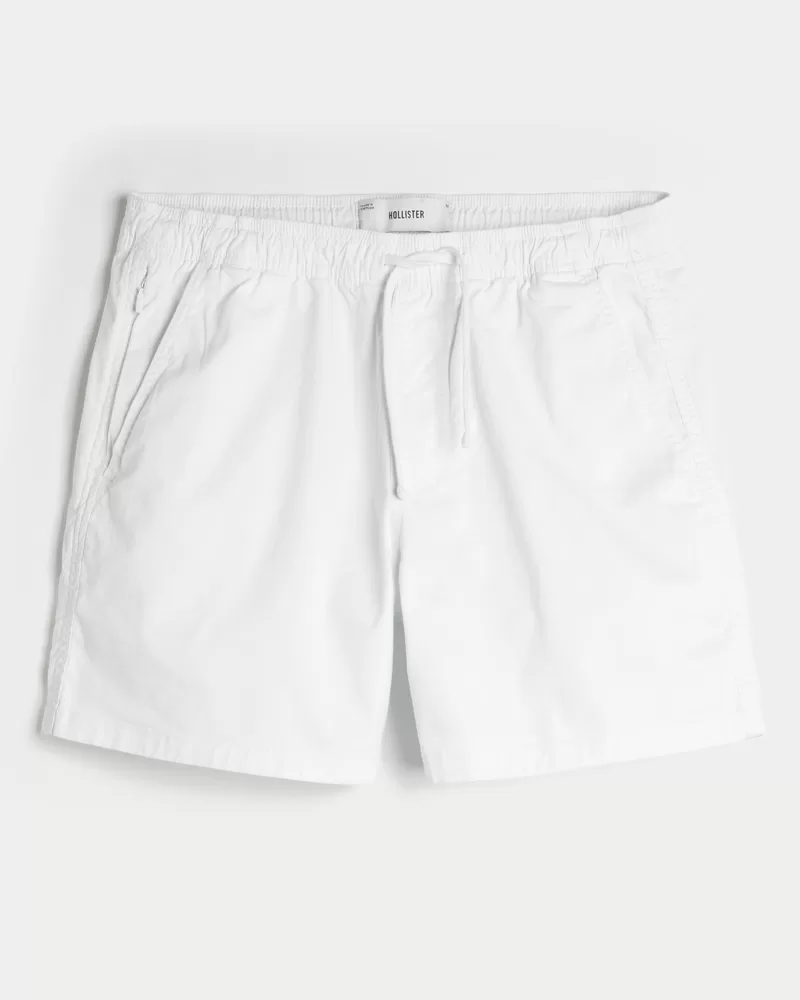Comfortable twill shorts designed with a pull-on drawstring waist and mid-thigh length. Pockets, right zipper pocket. Imported.