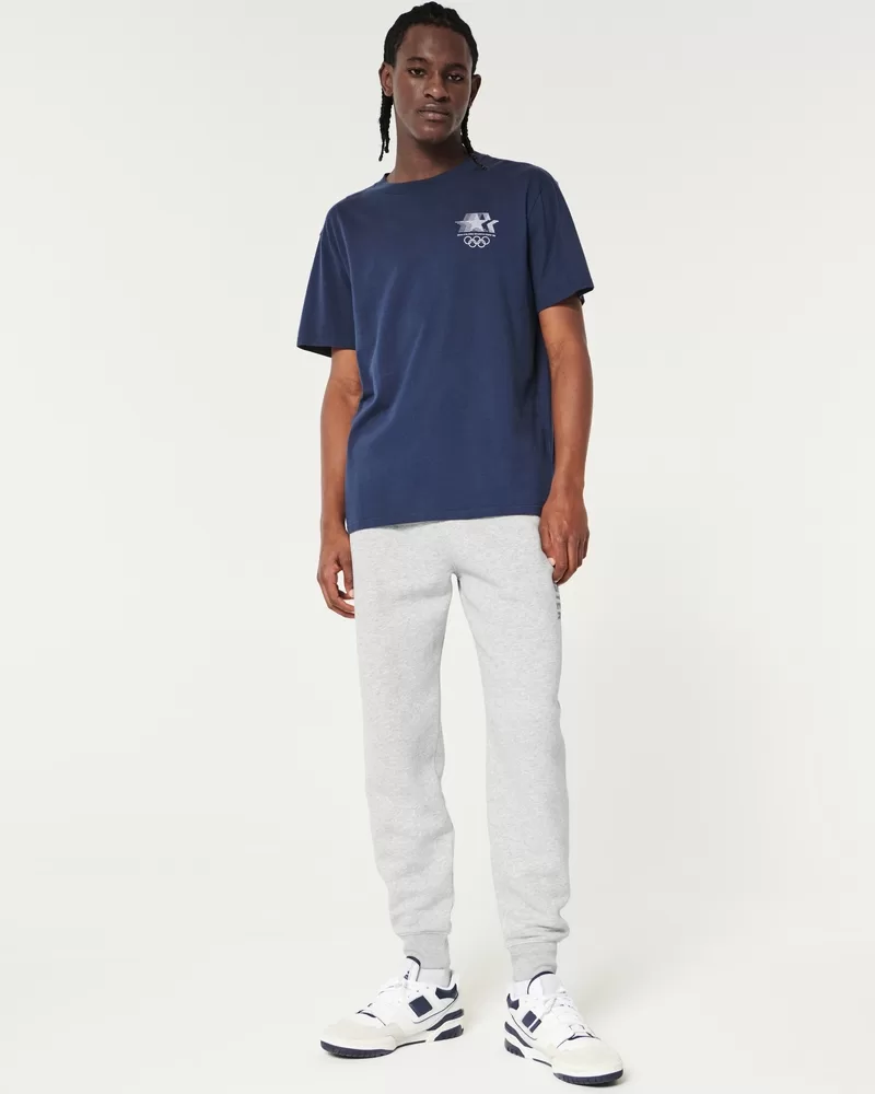 Super soft fleece joggers designed with a relaxed leg, featuring an embroidered logo graphic. Soft drawstring waist, pockets, banded hems. Imported.