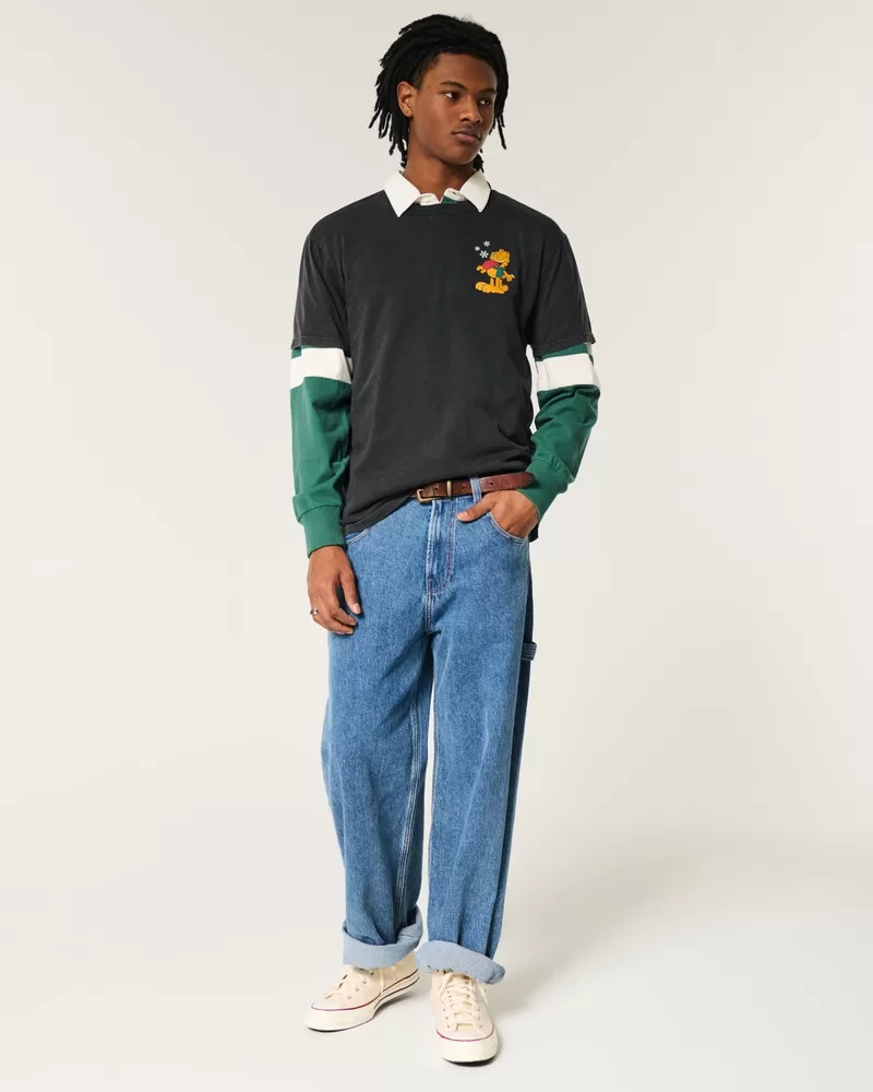 A super soft 100% cotton tee featuring official licensed Garfield print graphics at the left chest and back. Crew neckline, short sleeves. Relaxed Fit. Imported.