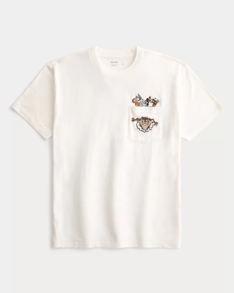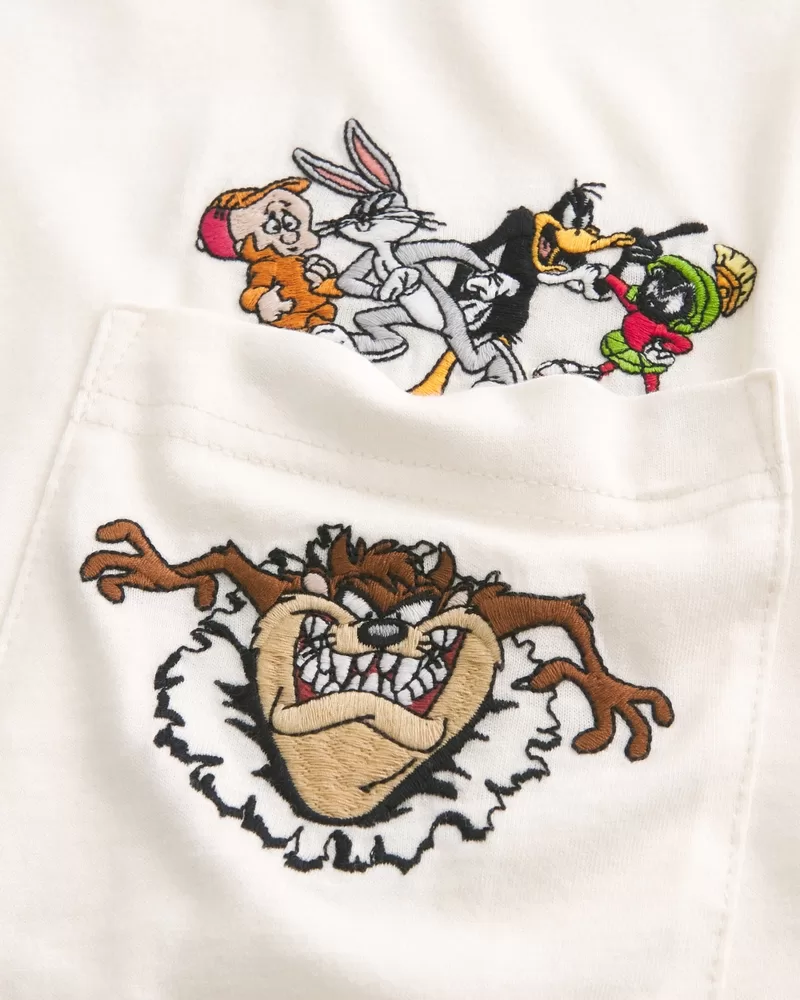 A super soft 100% cotton tee featuring official licensed Looney Tunes graphic embroidery at the left chest pocket. Crew neckline, short sleeves. Relaxed Fit. Imported.