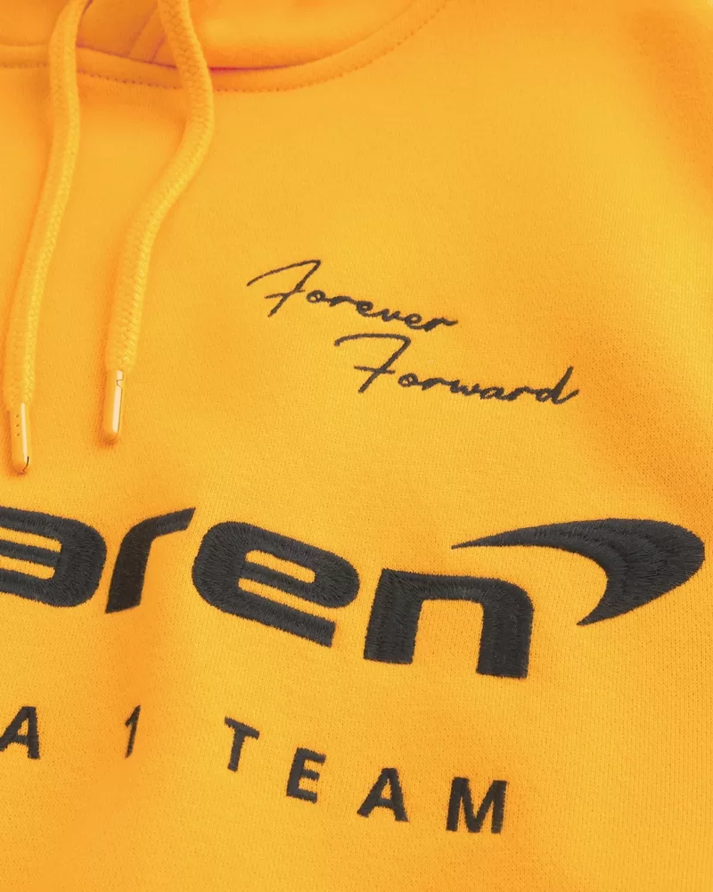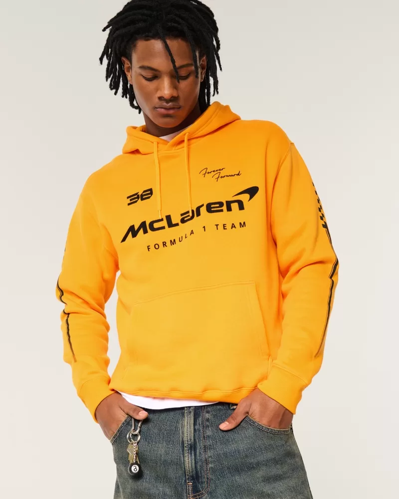 This ultra-comfortable fleece hoodie features official licensed McLaren graphic embroidery with print details at the sleeves. Front pouch pocket, soft drawstring hood, long sleeves. Relaxed Fit. Imported.