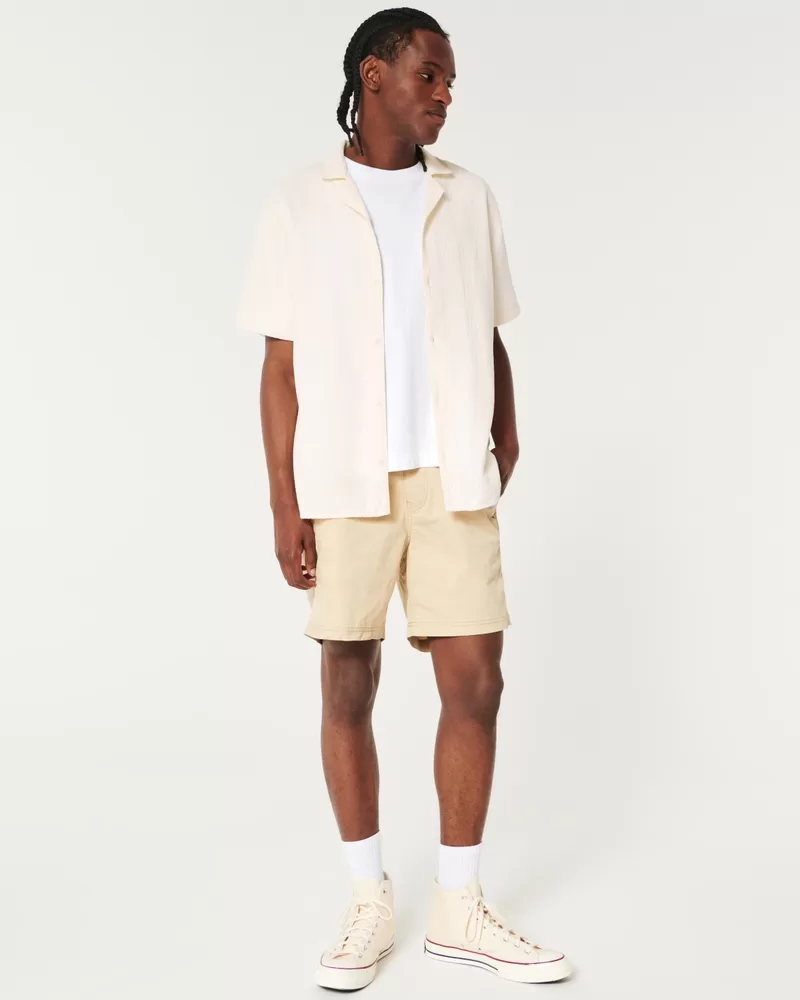 A soft, comfortable shirt in 100% cotton with all-over texture. Short sleeves, full button closure, collar. Relaxed Fit. Imported.