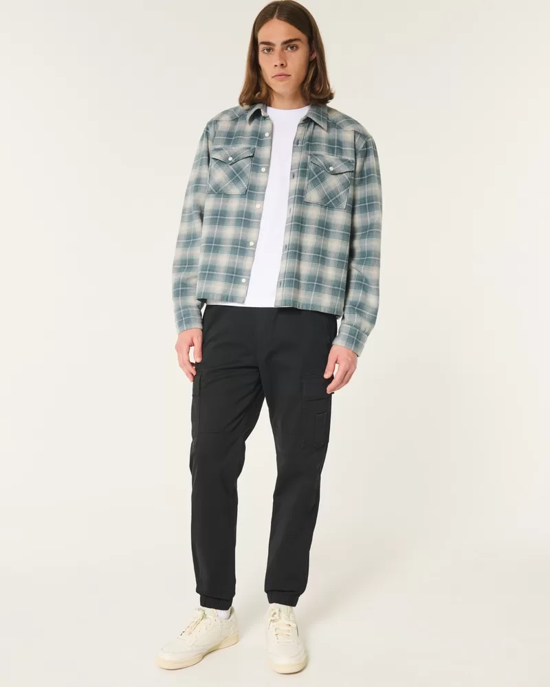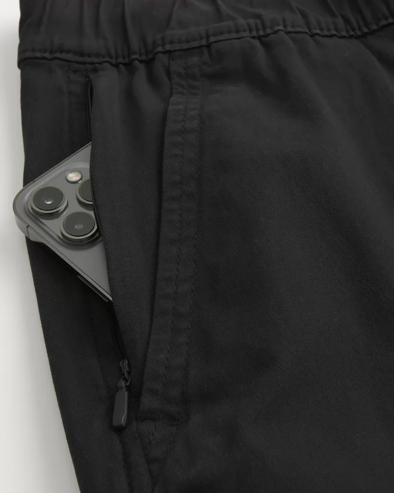 Comfortable joggers in twill fabric, designed with a relaxed leg and side cargo pockets. Drawstring waist, banded hems, right zipper pocket. Imported.