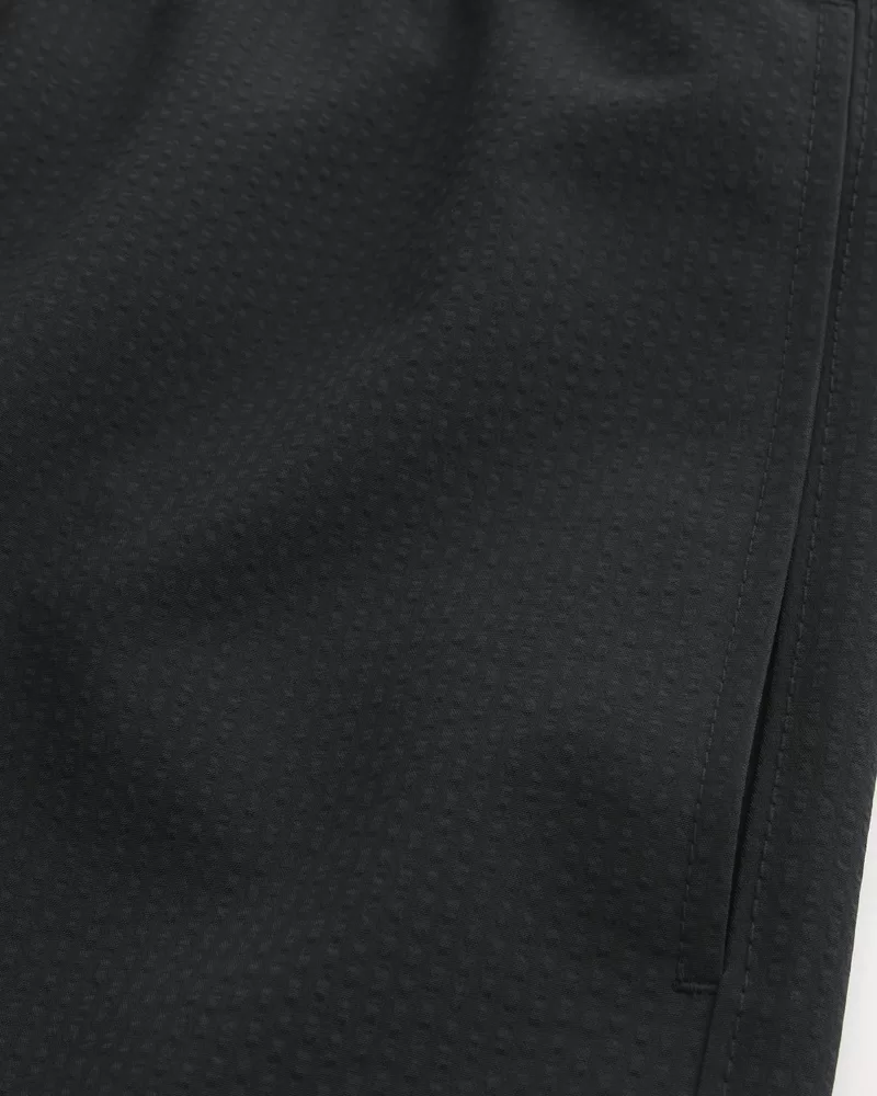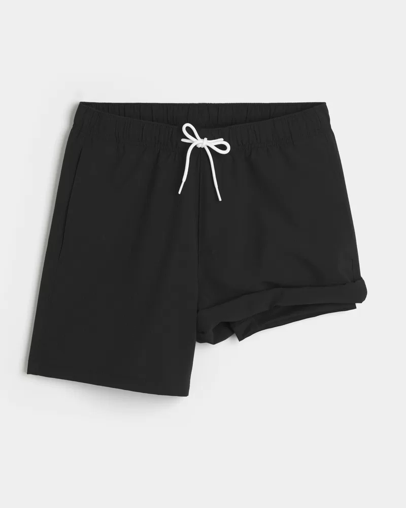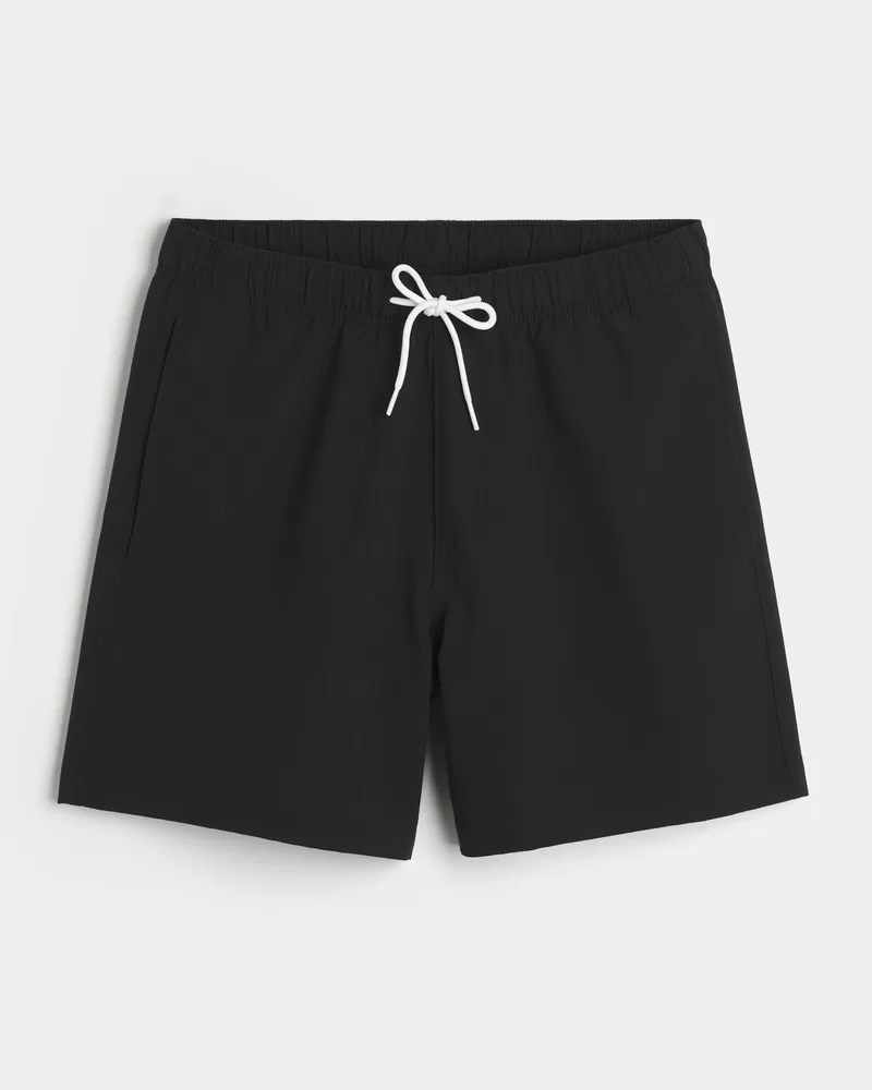 Shorter-length swim trunks that hit mid-thigh. Featuring comfortable 4-way stretch seersucker swim fabric and a 6″ inseam. Front pockets, mesh lining. Imported.