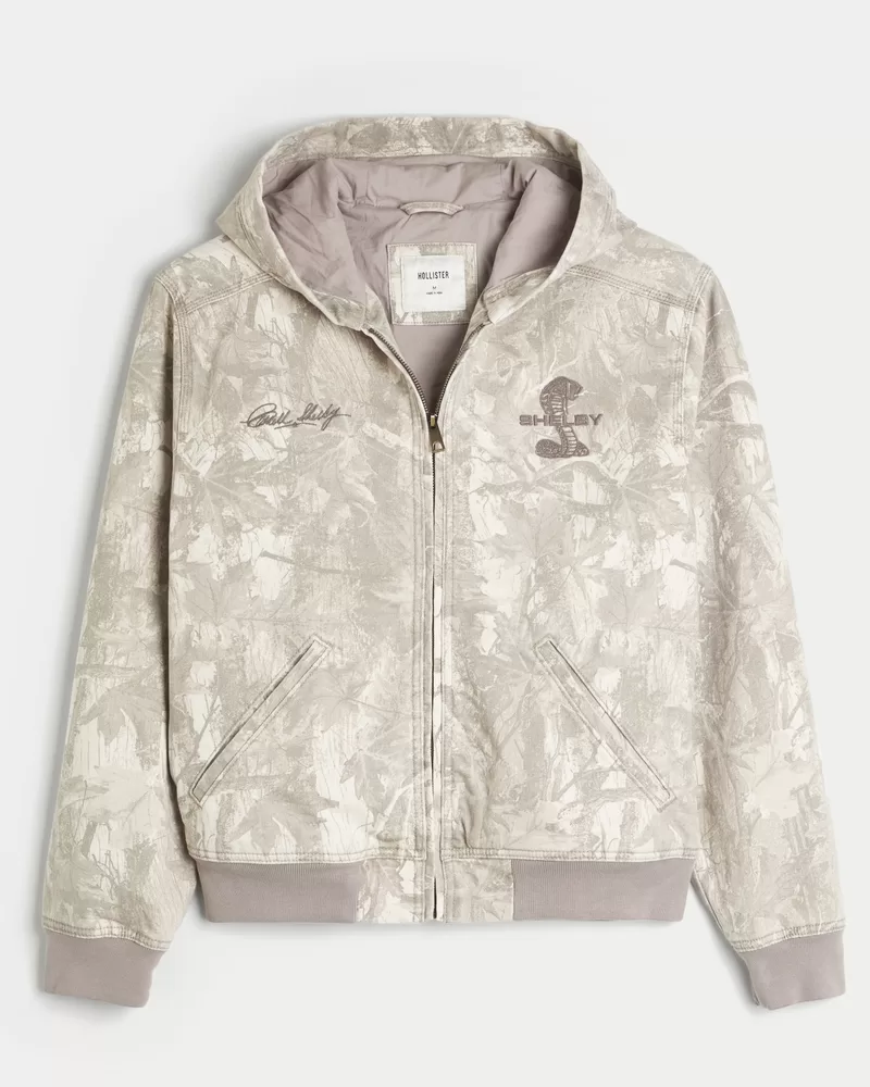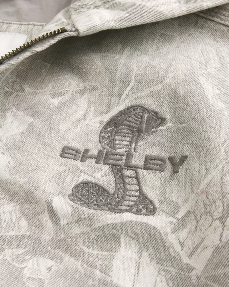 This classic jacket features official licensed Shelby graphic embroidery at the front and back. Full zip-up closure, hood, front pockets, banded hems, lined. Imported.