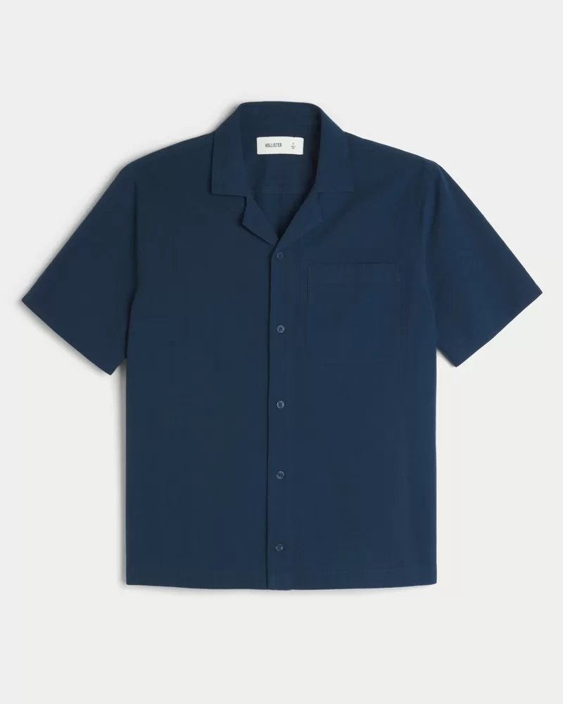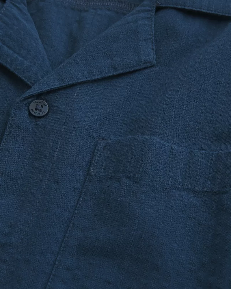 A classic shirt in soft cotton seersucker fabric, designed with a full button closure, left chest pocket and short sleeves. Collar. Imported.