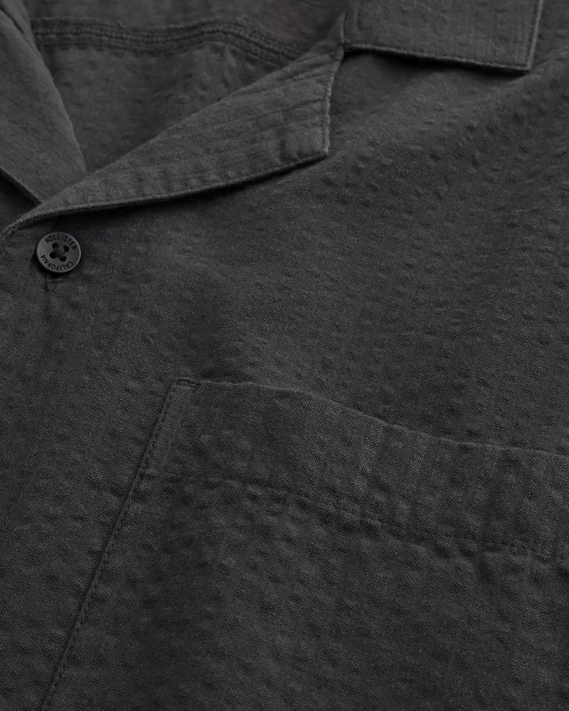 This classic button-through shirt is made with soft seersucker cotton fabric. Collar, short sleeves, left chest pocket.