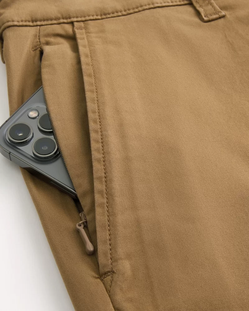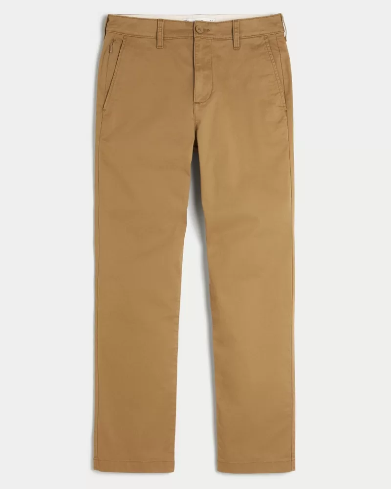 Ultra-comfortable twill chino pants with stretch, designed with a slim straight leg. Pockets, right zipper pocket. Imported.