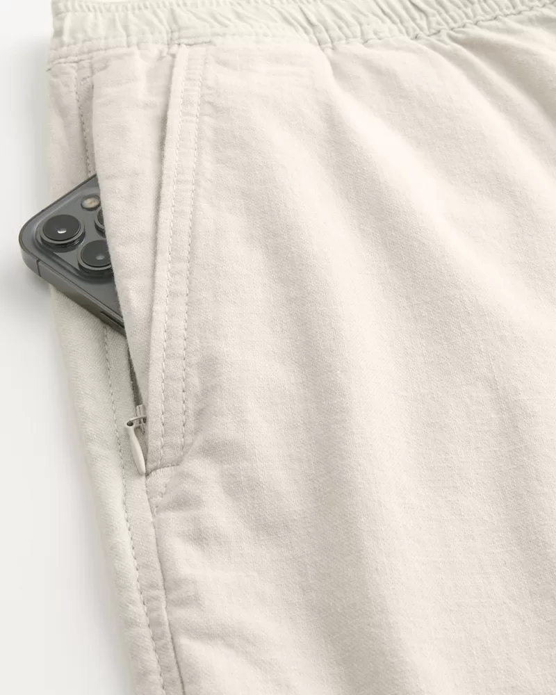 Ultra-comfortable pants in a soft linen blend with Hollister Epic Flex, designed with a slim straight leg and drawstring waist. Pockets, right zipper pocket. Imported.