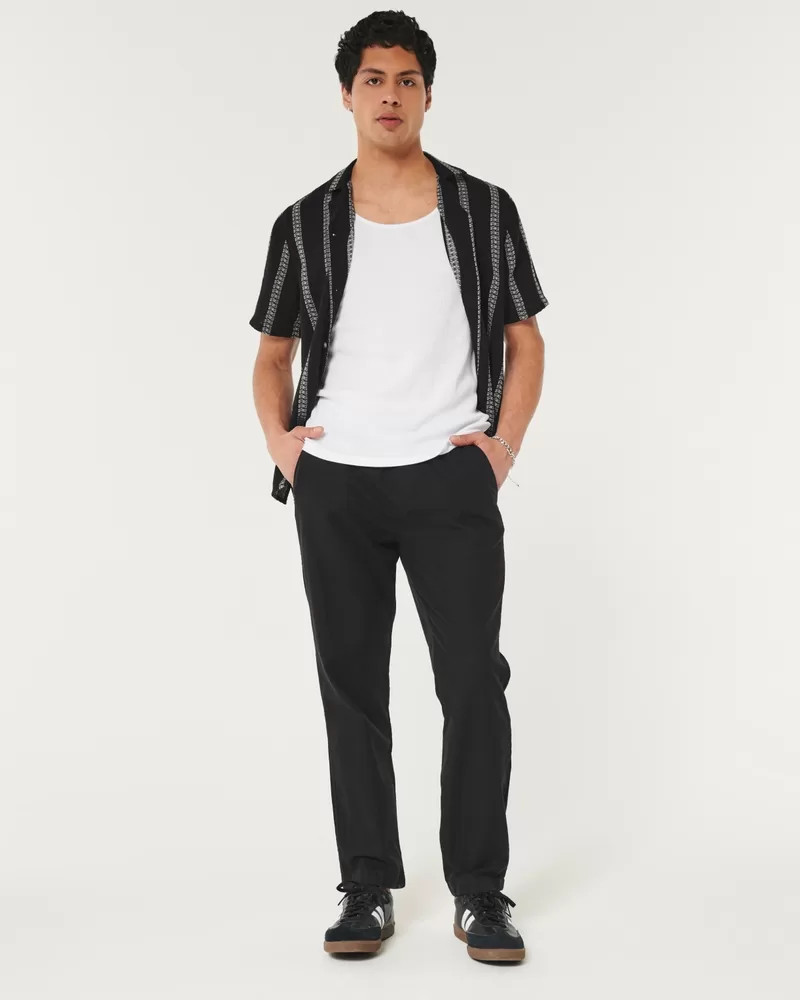 Ultra-comfortable pants in a soft linen blend with Hollister Epic Flex, designed with a slim straight leg. Drawstring waist, pockets, right zipper pocket. Imported.