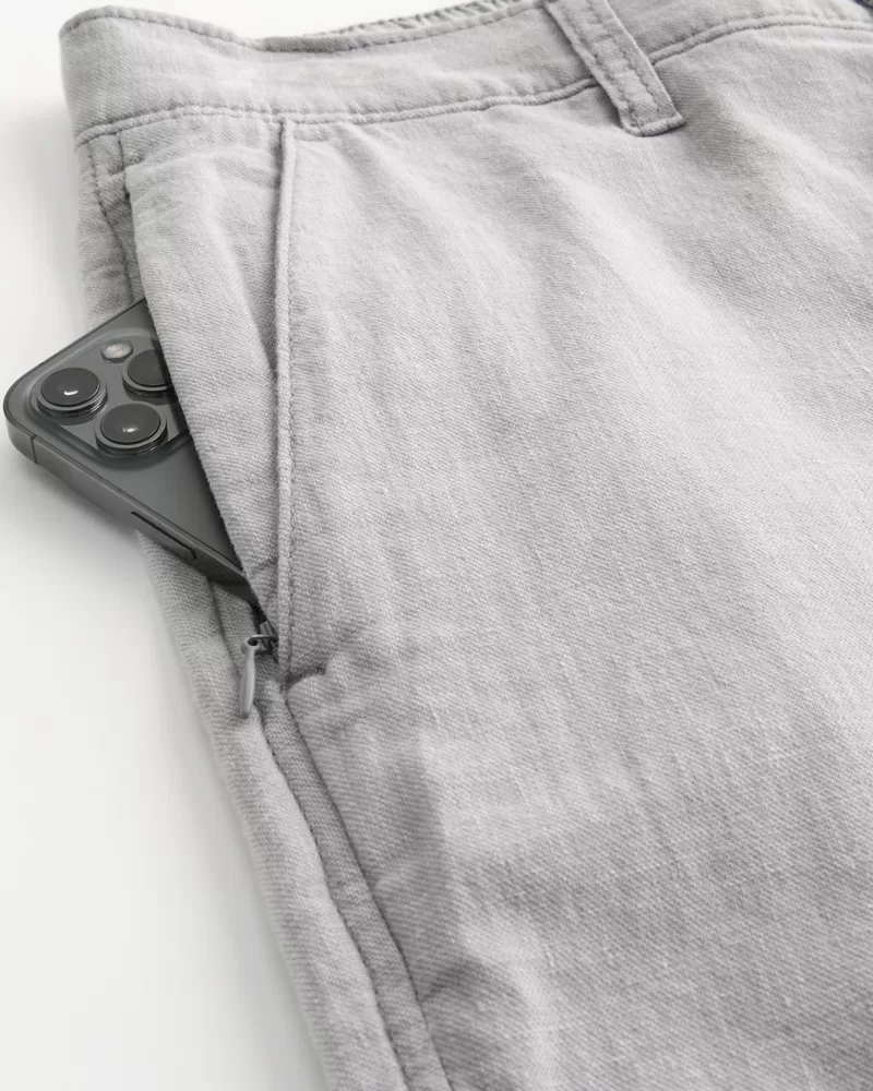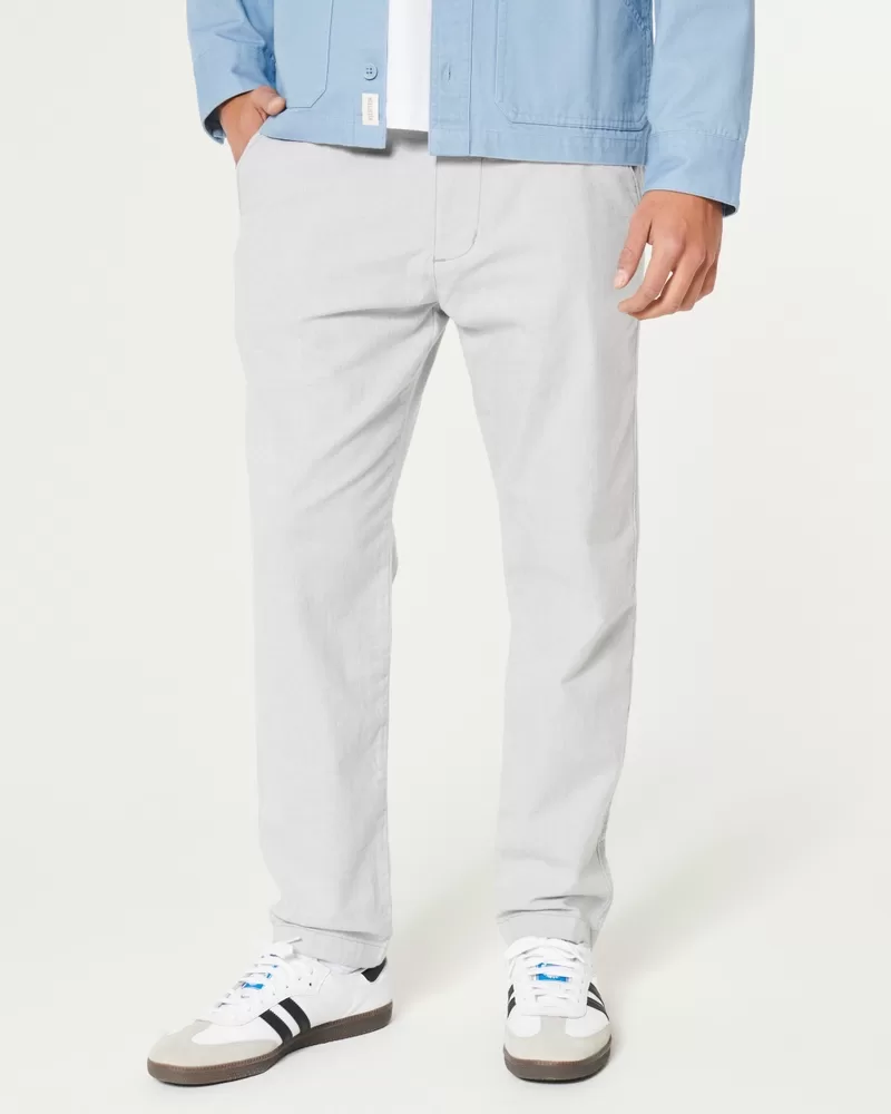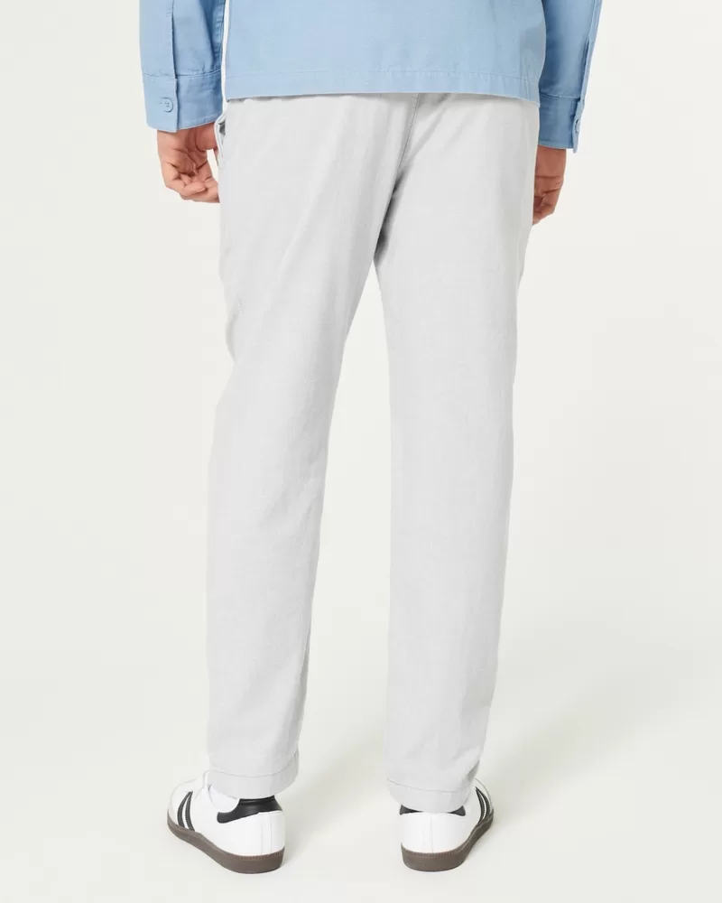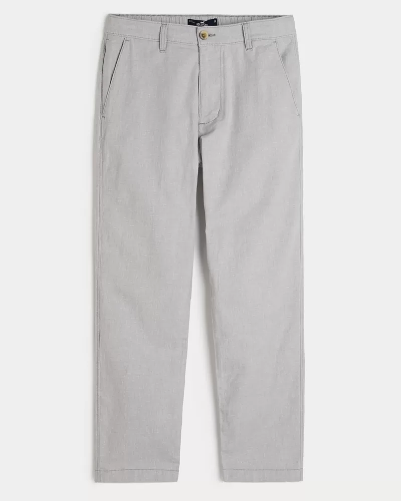 Ultra-comfortable pants in a soft linen blend with Hollister Epic Flex, designed with a slim straight leg. Pockets, right zipper pocket. Imported.
