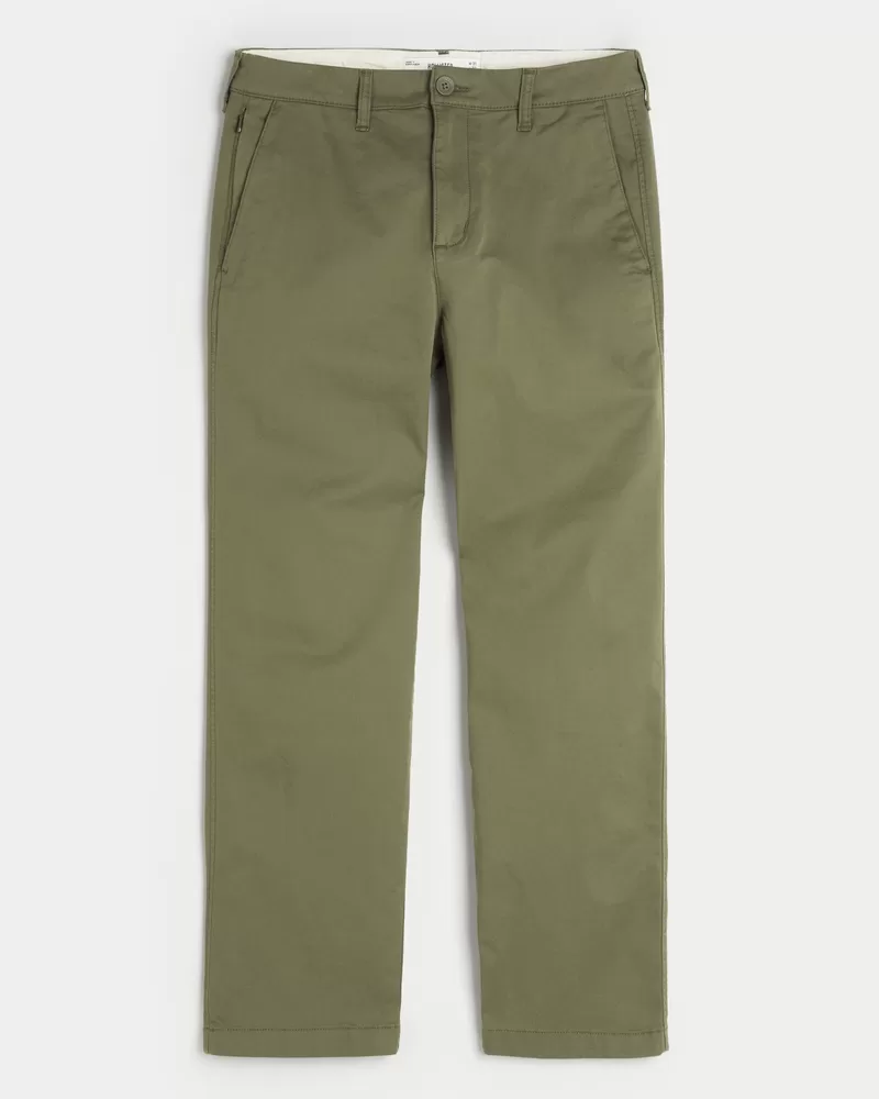 Ultra-comfortable twill chino pants with stretch, designed with a straight leg from top to bottom. Pockets, right zipper pocket. Imported.