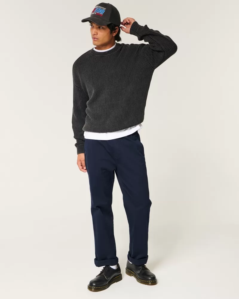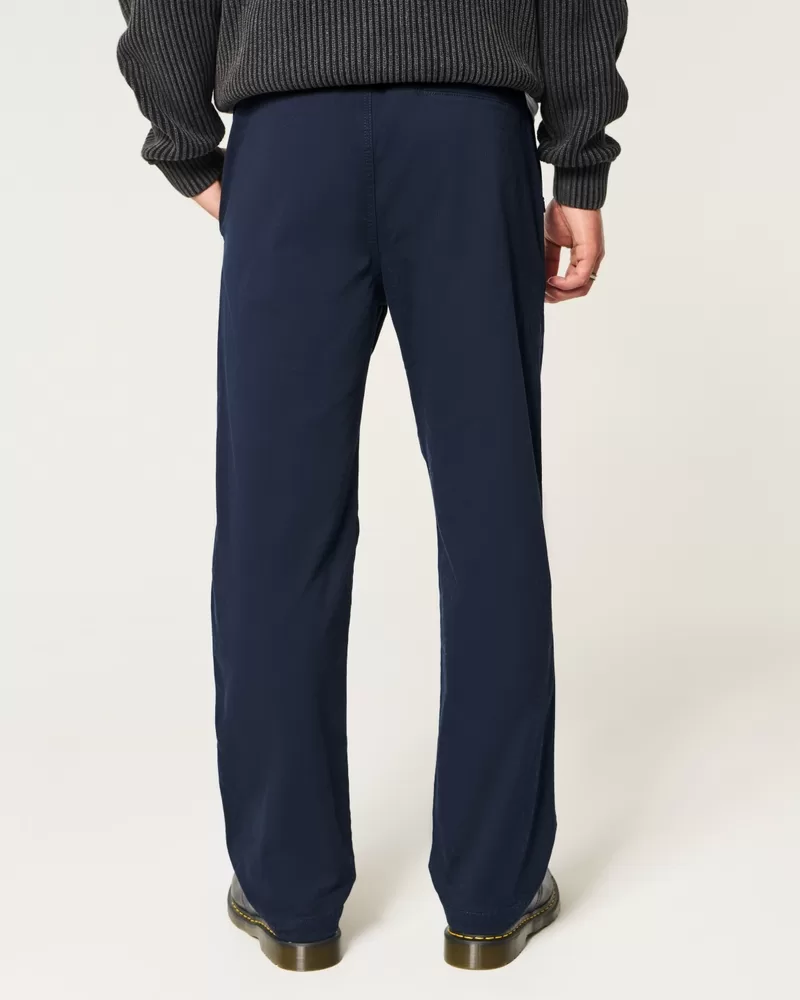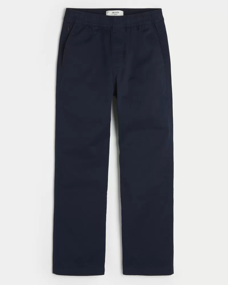 Clean-cut, comfortable twill pants with stretch. Pull-on flex waist, straight leg, pockets, right zipper pocket. Imported.