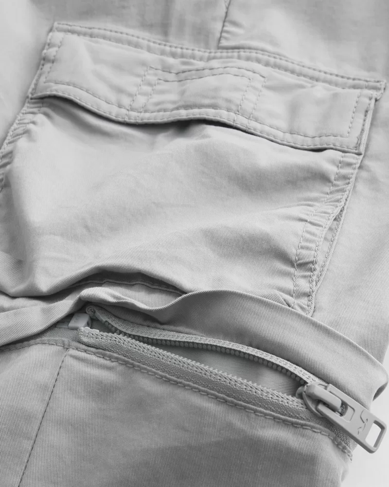 Ultra-comfortable pants designed with a straight leg and zippers to instantly go from pants to shorts. Side cargo pockets, banded waist. Imported.
