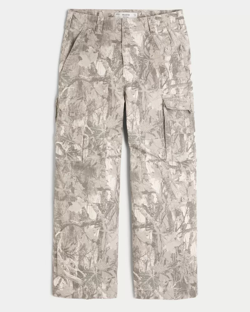 Comfortable twill pants with stretch, designed with a super baggy leg and side cargo pockets. All-over camo pattern. Stretch. Imported.