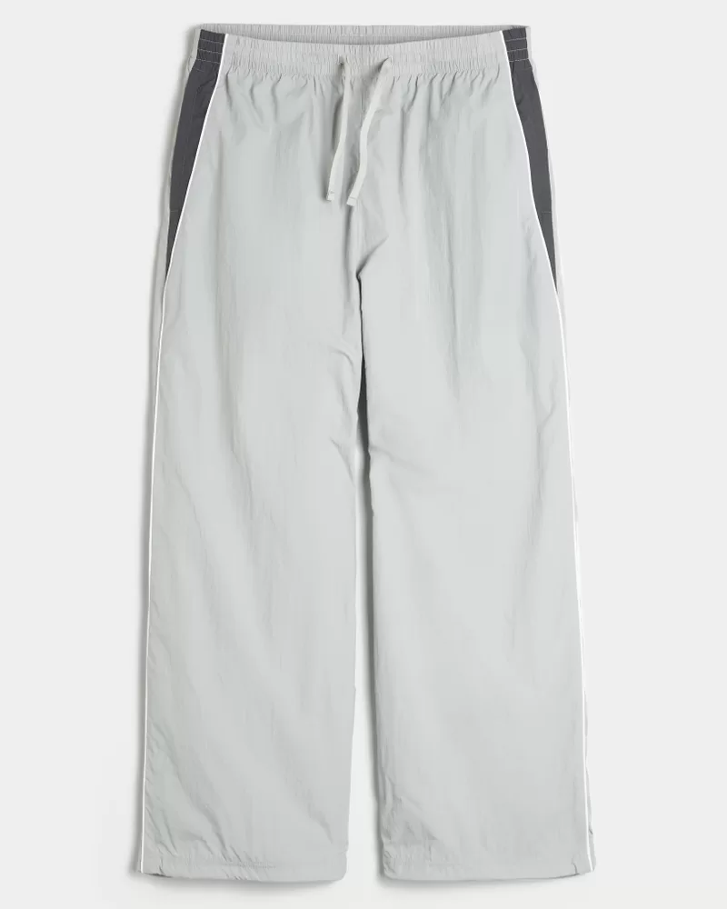 Comfortable track pants with a drawstring waist and side piping. Pockets, super baggy leg. Imported.