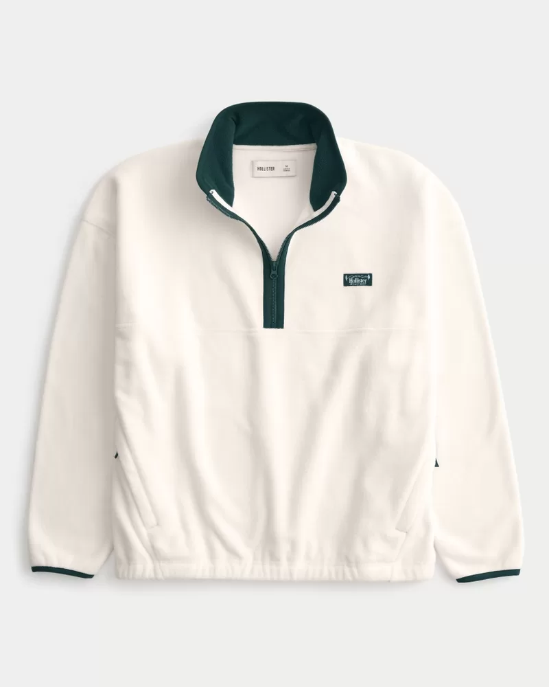 Made with super soft thermal fleece fabric, this sweatshirt features a mock-neck collar with quarter-zip closure and left chest logo detail. Front zipper pockets. Imported.