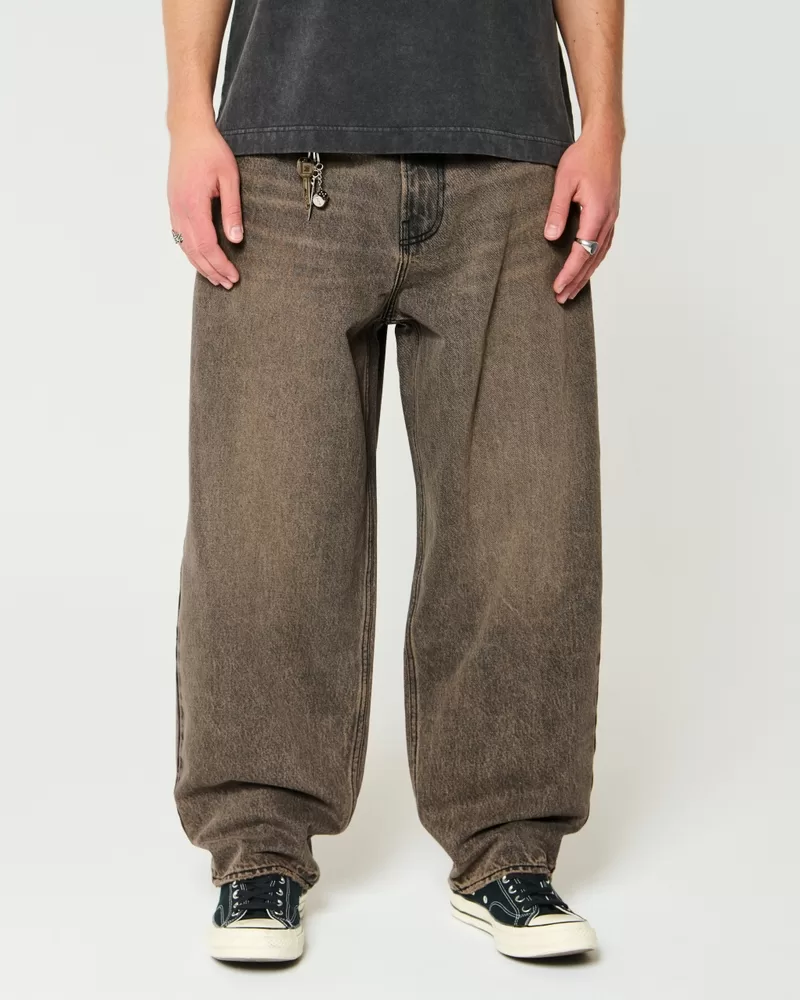 Comfortable denim skater jeans designed with a baggy leg. Tinted black, fading and whiskering. Imported.