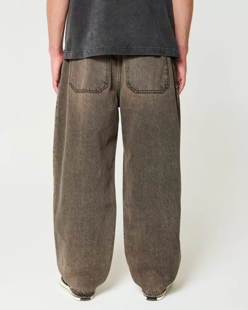 Comfortable denim skater jeans designed with a baggy leg. Tinted black, fading and whiskering.
