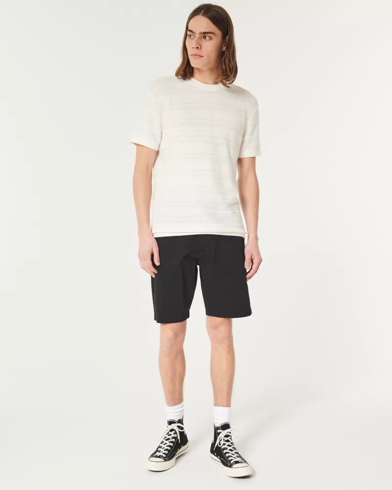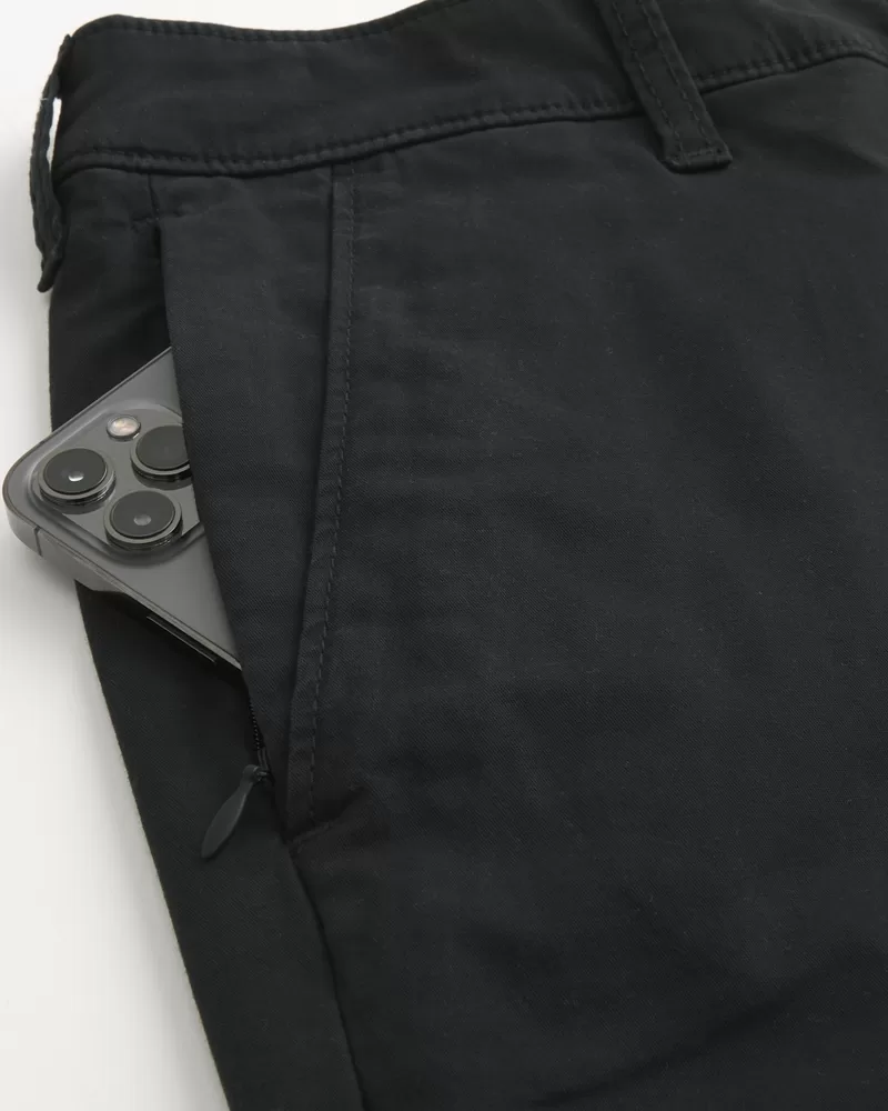 Ultra-comfortable shorts in Hollister Epic Flex twill, designed with a classic flat-front silhouette and 9″ inseam. Pockets, right zipper pocket.