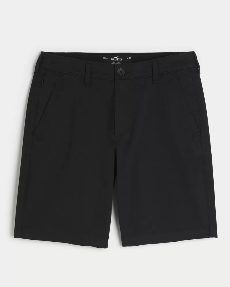 Ultra-comfortable shorts in Hollister Epic Flex twill, designed with a classic flat-front silhouette and 9″ inseam. Pockets, right zipper pocket. Imported.
