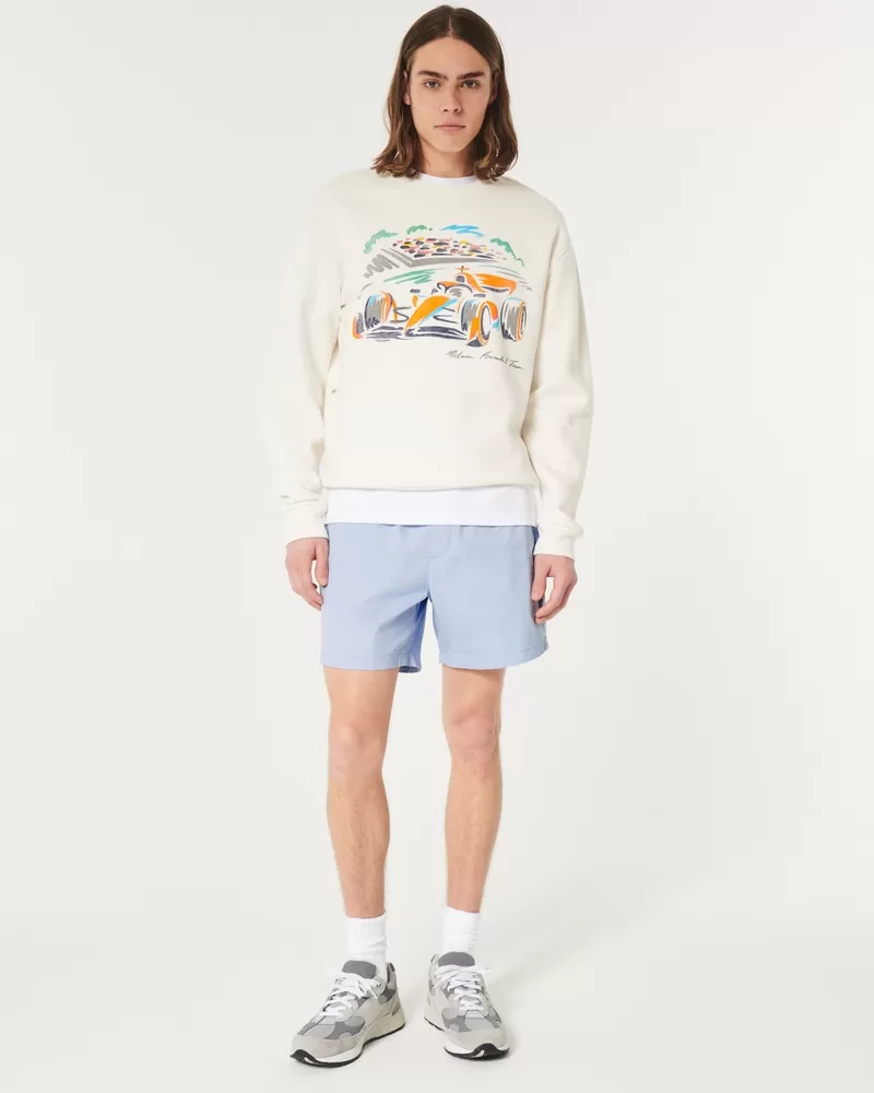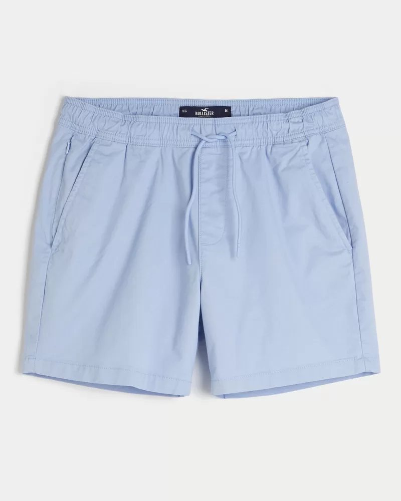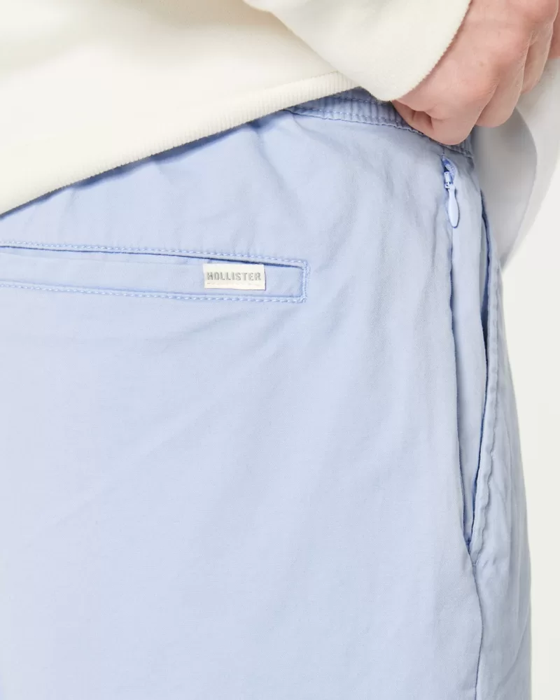 Ultra-comfortable pull-on shorts in Hollister Epic Flex twill fabric, featuring a drawstring waist and right zipper pocket. 5″ inseam. Imported.