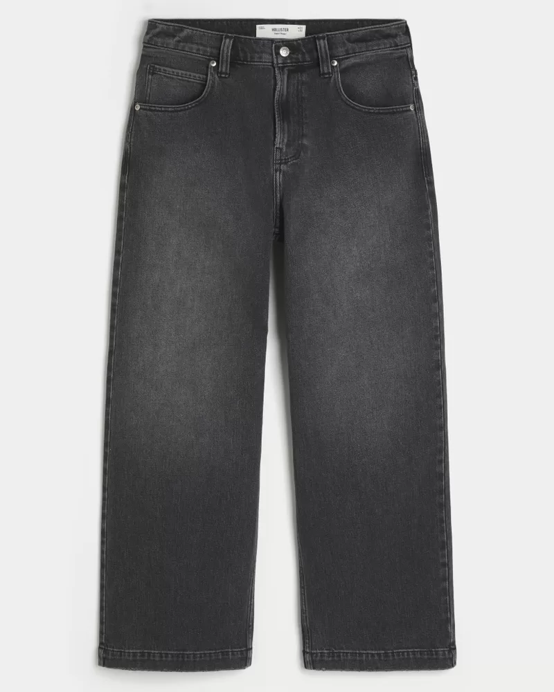 Comfortable jeans in washed black, designed with a super baggy leg. Fading. Imported.