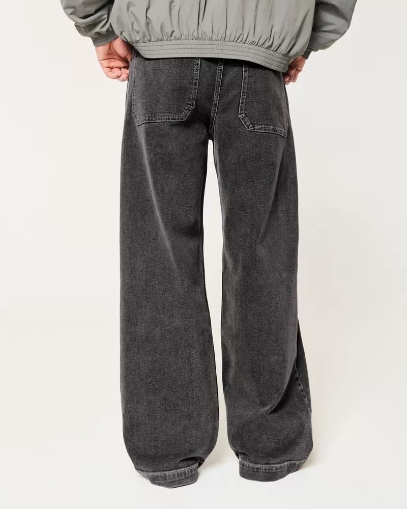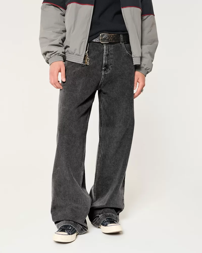 Ultra-comfortable jeans in washed black, designed with a super baggy leg. Iconic 5-pocket styling.