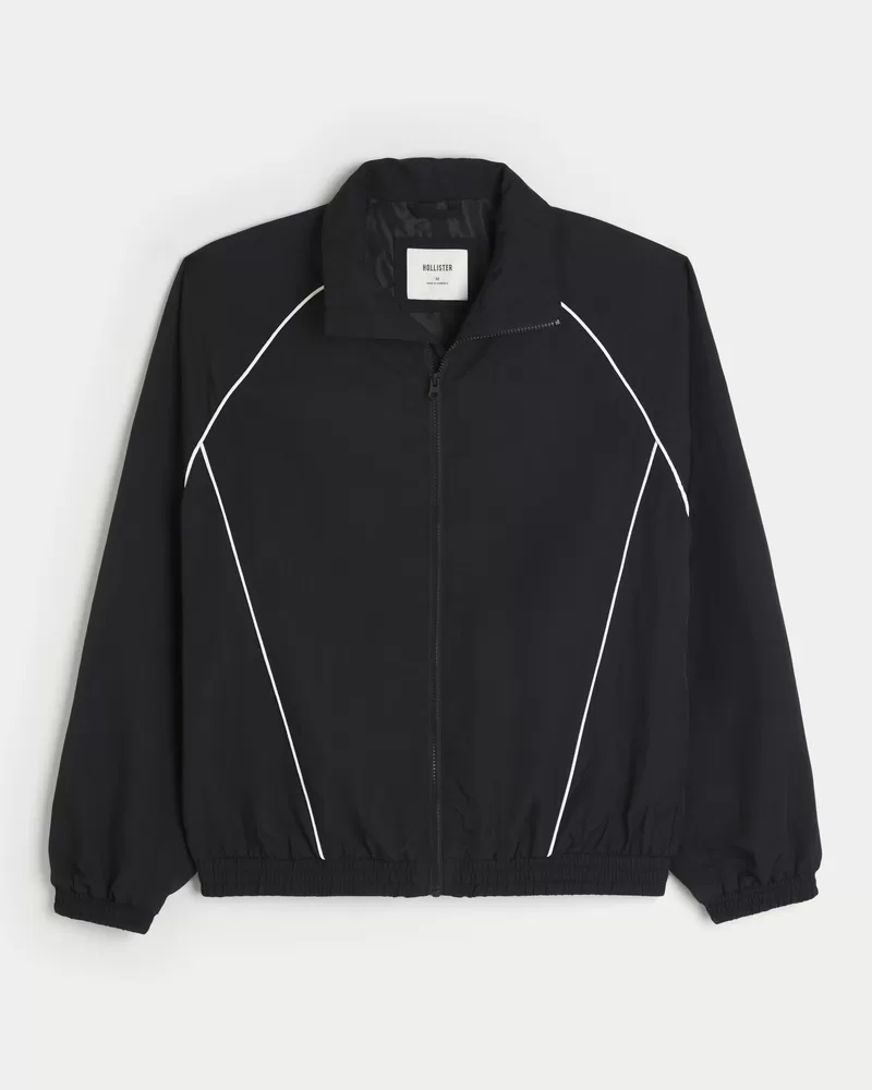 An ultra-comfortable windbreaker jacket with a full zip-up closure piping details. Banded hems.