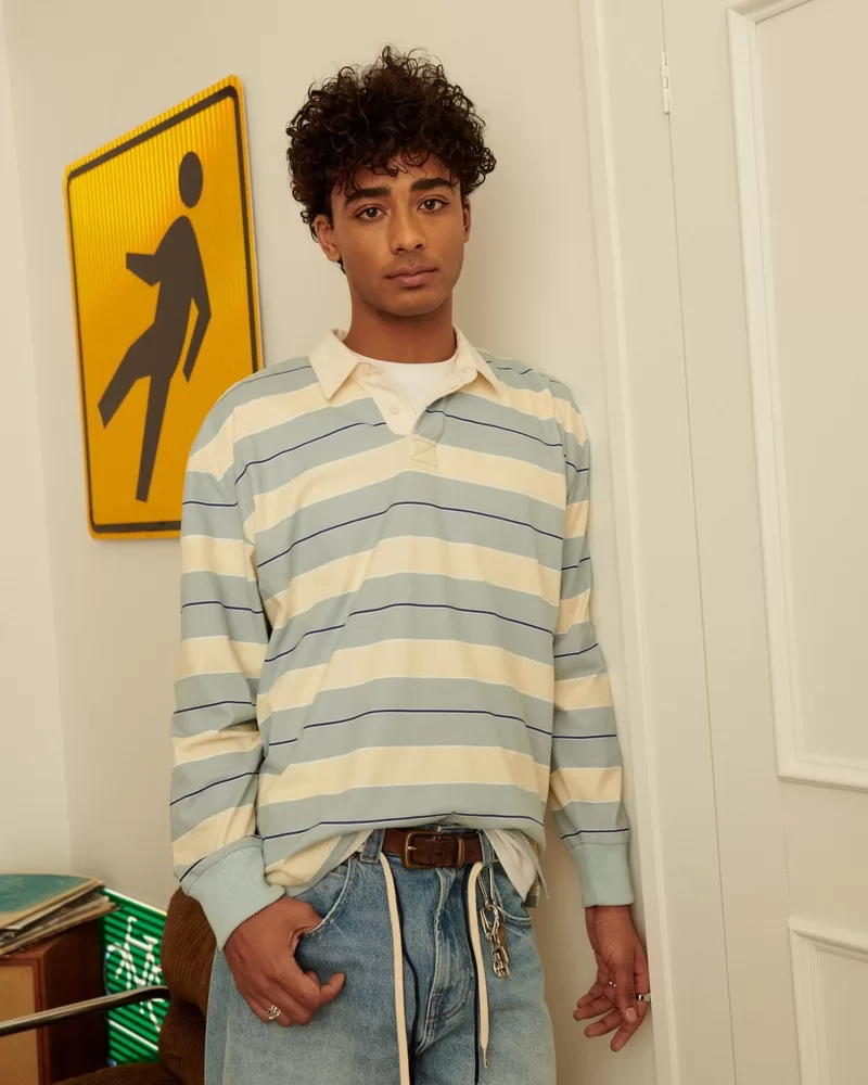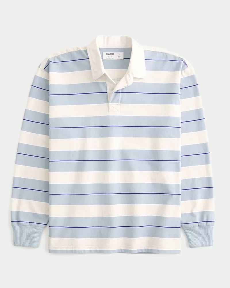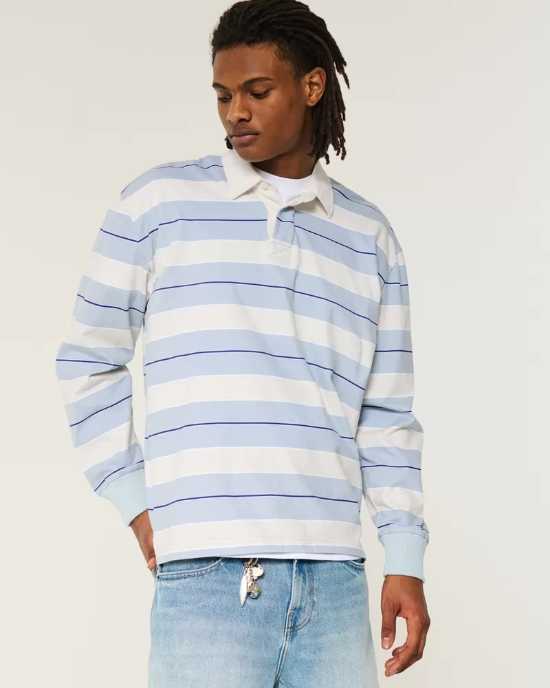 A long-sleeve rugby polo in heavyweight 100% cotton fabric with stripes. Collar, button placket. Boxy Fit. Imported.