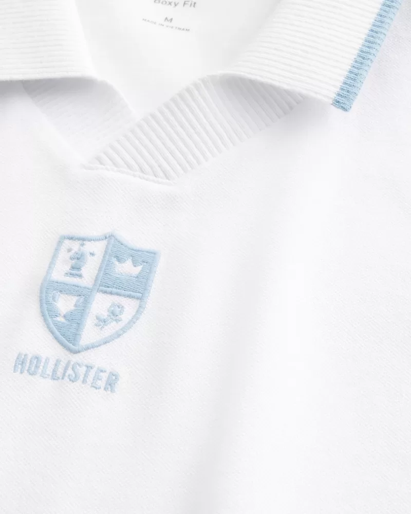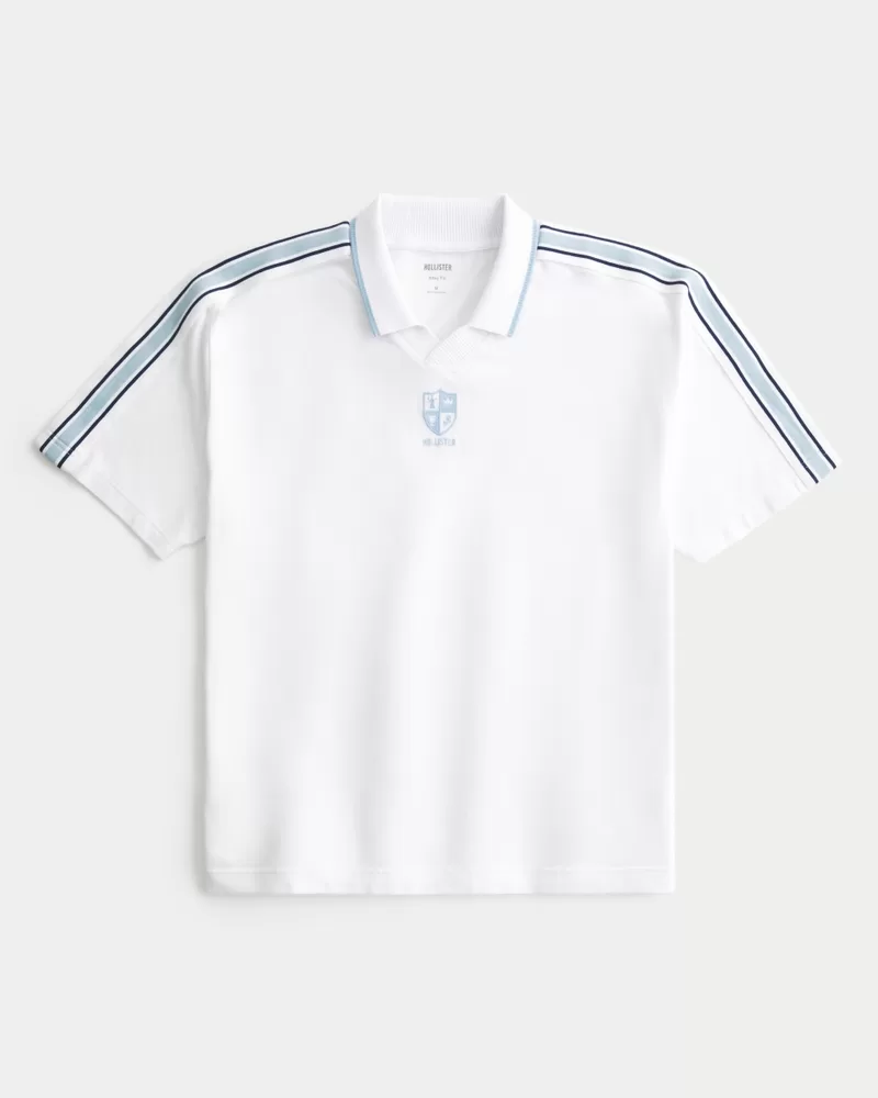 This classic polo is made with soft pique fabric and features an embroidered logo detail. Collar, stripes along the shoulders. Boxy Fit. Imported.