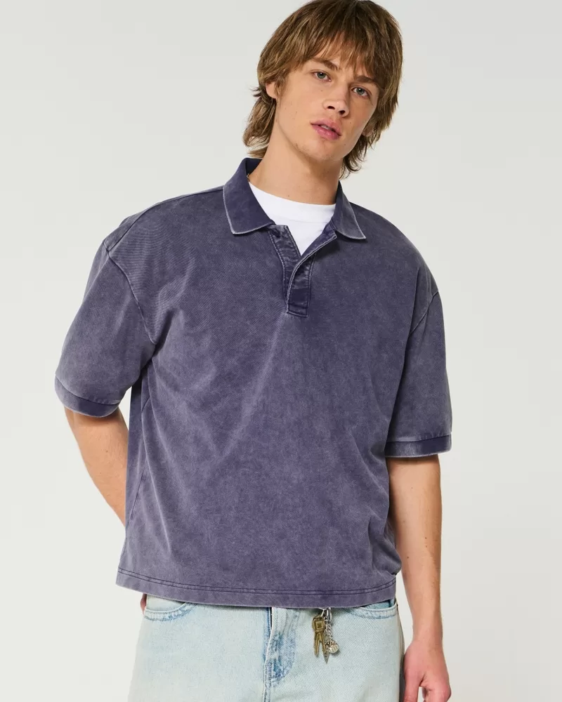 This classic, comfortable polo is made with soft pique fabric. Collar, button placket, collar, washed look. Boxy Crop Fit. Imported.