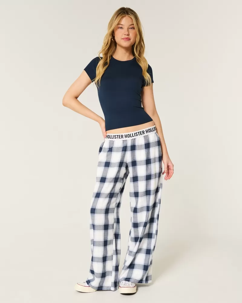 Super soft flannel pajama pants designed with a baggy leg and banded waist that shows logo details when folded over. Pockets, adjustable rise. Imported.