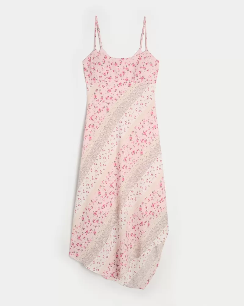 Your new favorite throw-on-and-go dress features an open back detail and removable pads. Adjustable straps, midi length, asymmetrical hem, soft crepe fabric. Imported.