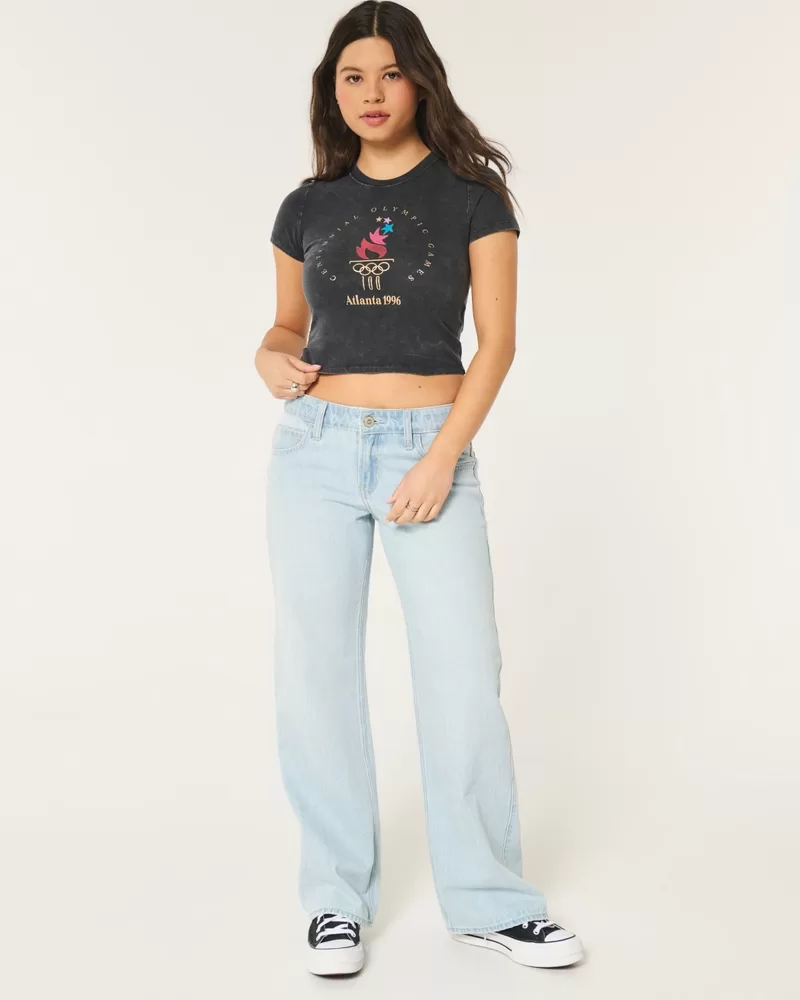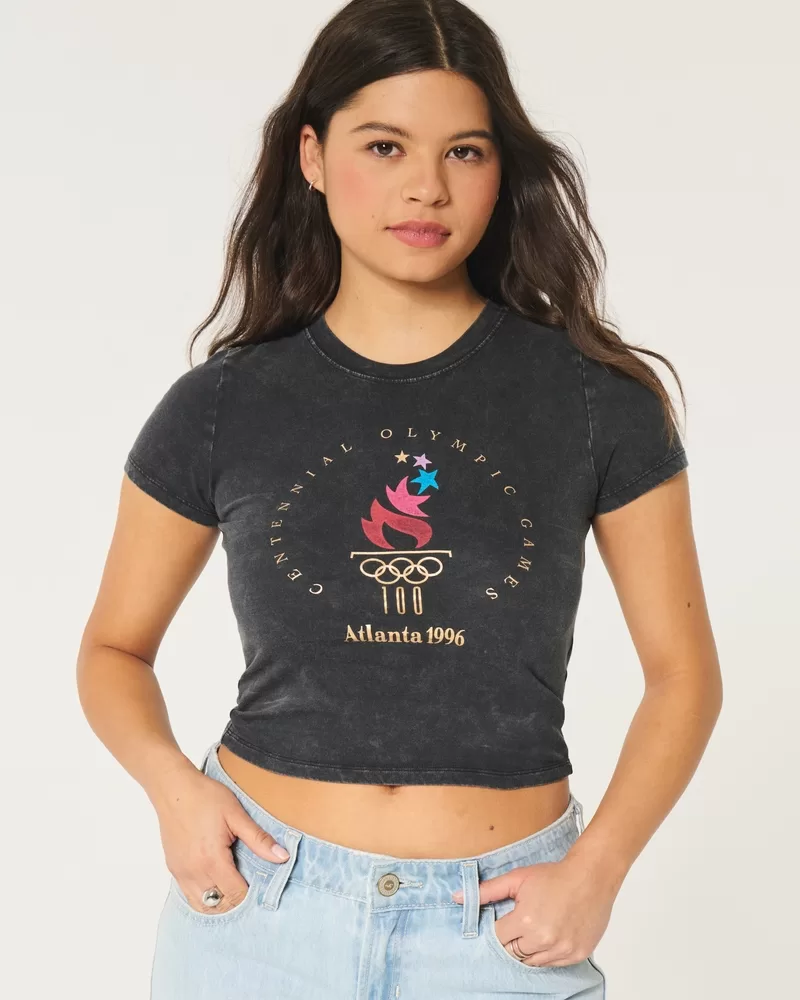 A super soft 100% cotton baby tee featuring official licensed Atlanta 1996 Olympic Games print graphics, a crew neckline and short sleeves. Washed look. Designed with a slightly shrunken silhouette. Slim Fit. Imported.