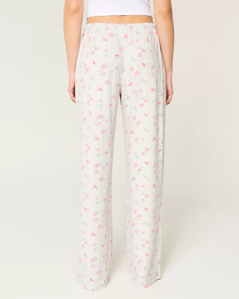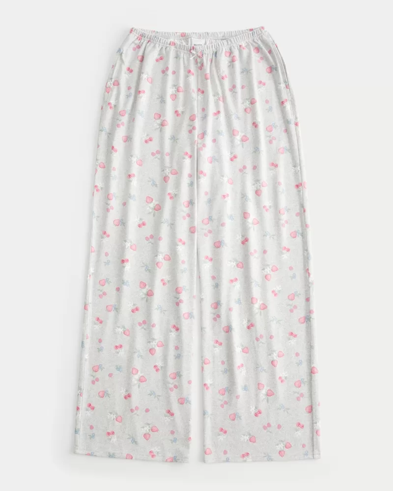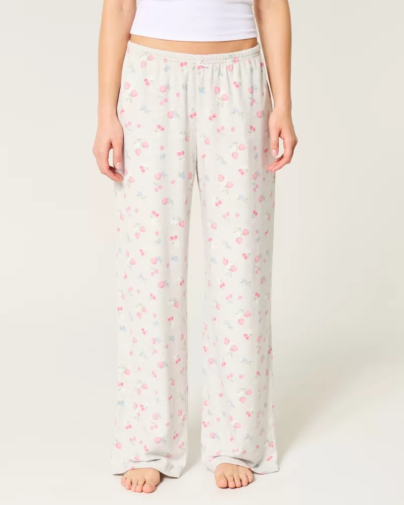 Cozy and super soft pajama pants featuring an all-over berry graphic pattern, banded adjustable-rise waist and pockets. Cute bow detail at center waist, wide-leg silhouette. Imported.