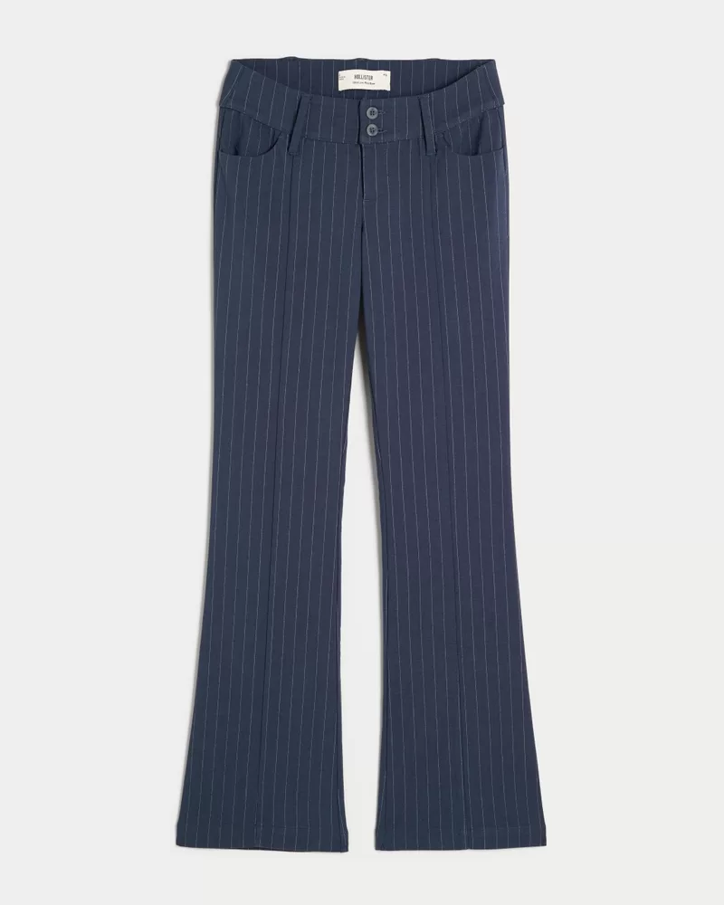 Comfortable twill pants designed with a flattering ultra low-rise waist, slim leg and boot hem. Pockets. Imported.