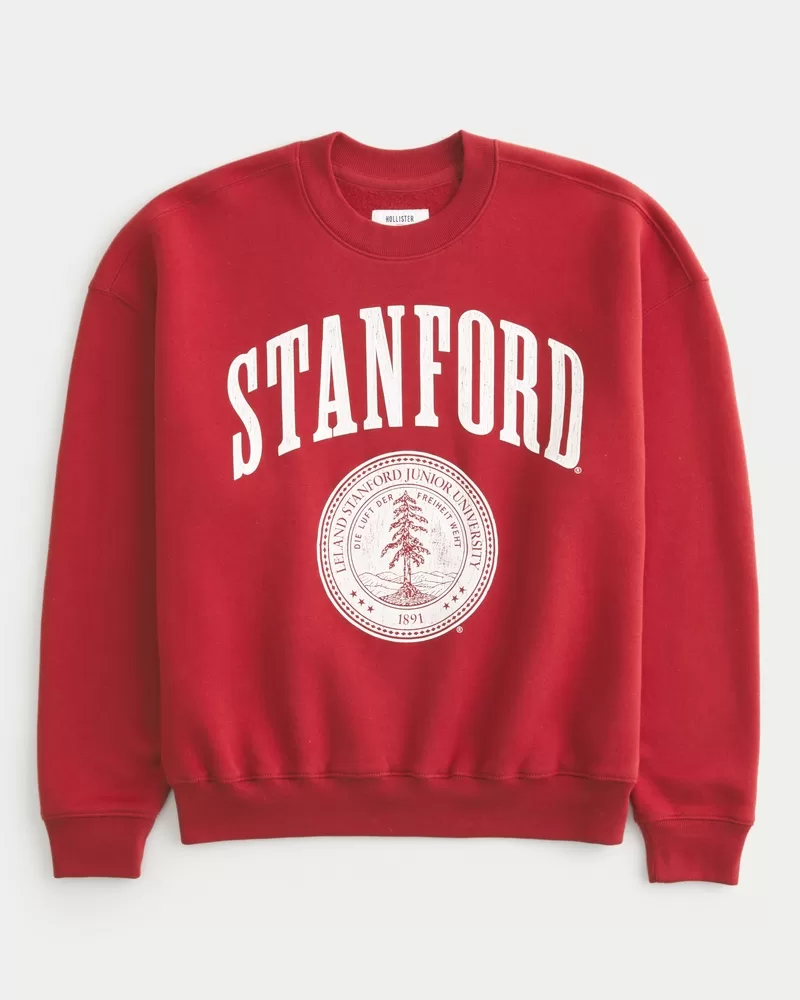 A super soft fleece sweatshirt featuring official licensed Stanford University graphic applique. Crew neckline, long sleeves. Boxy Fit. Imported.