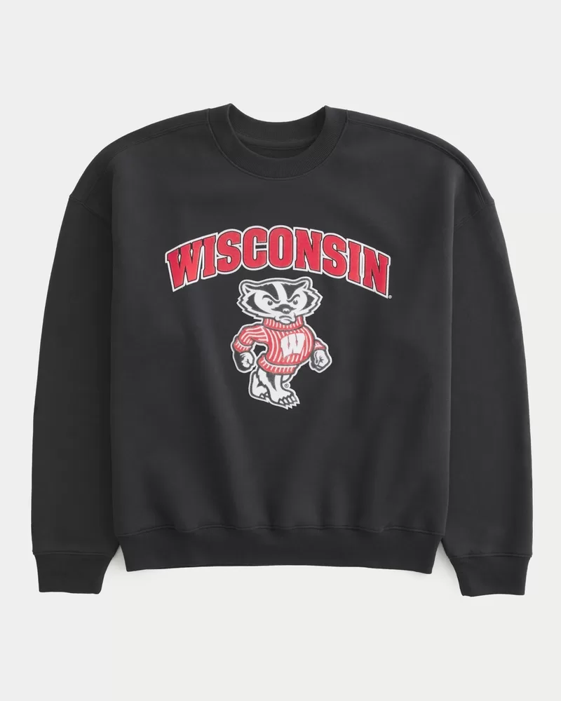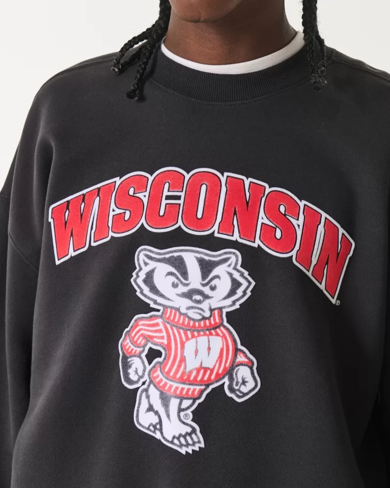 Boxy University of Wisconsin Graphic Crew Sweatshirt